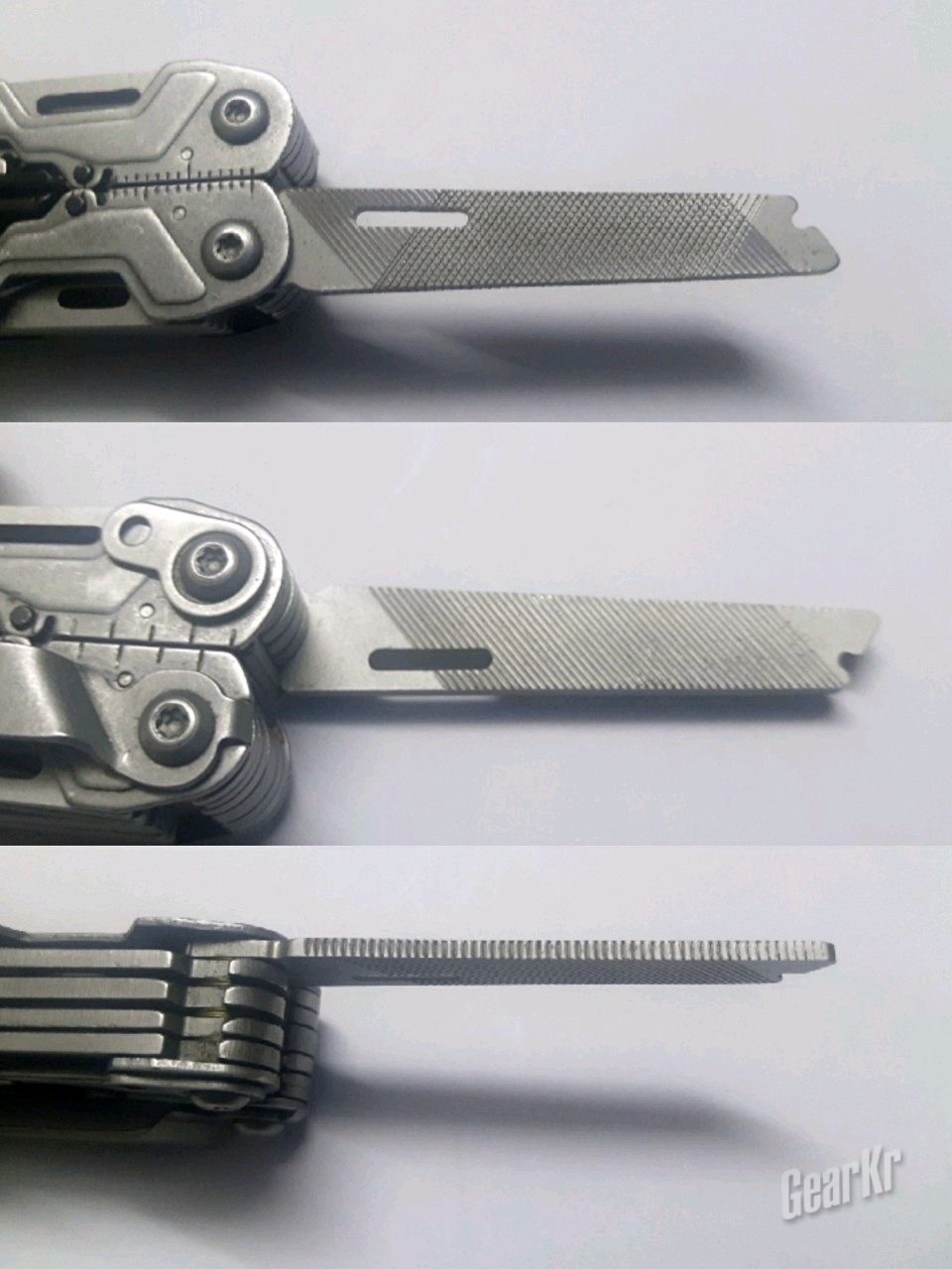 至于锉刀,个人觉得是这把工具钳上设计最好的小工具。这把锉刀实际有三个锉削用面,且由粗到细逐渐递进。即使是最粗的侧面,也不会如Wingman上的金属锉一样,因为开槽过远而导致容易滑动。最细的一面,用来锉指甲也合适。