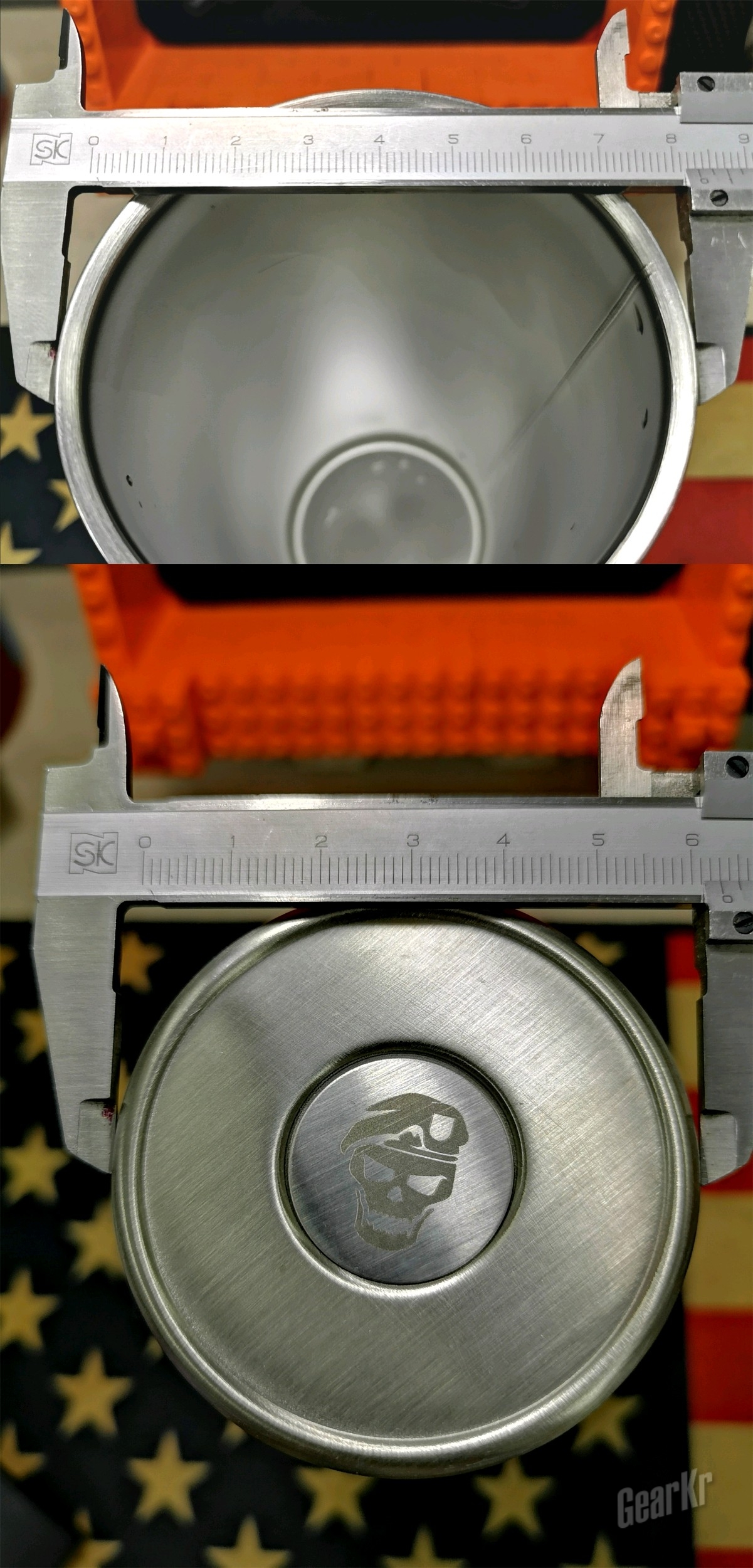 杯身外部采用拉丝表面处理,两侧各喷绘有黑色的品牌字母LOGO和贝雷帽骷髅头商标,同时在杯底也有骷髅标的激光刻印。如果不是当作品牌大货售卖的话,看起来更像是作为周边纪念品的存在。这年头把杯子选为品牌周边,已经属于常规操作了~