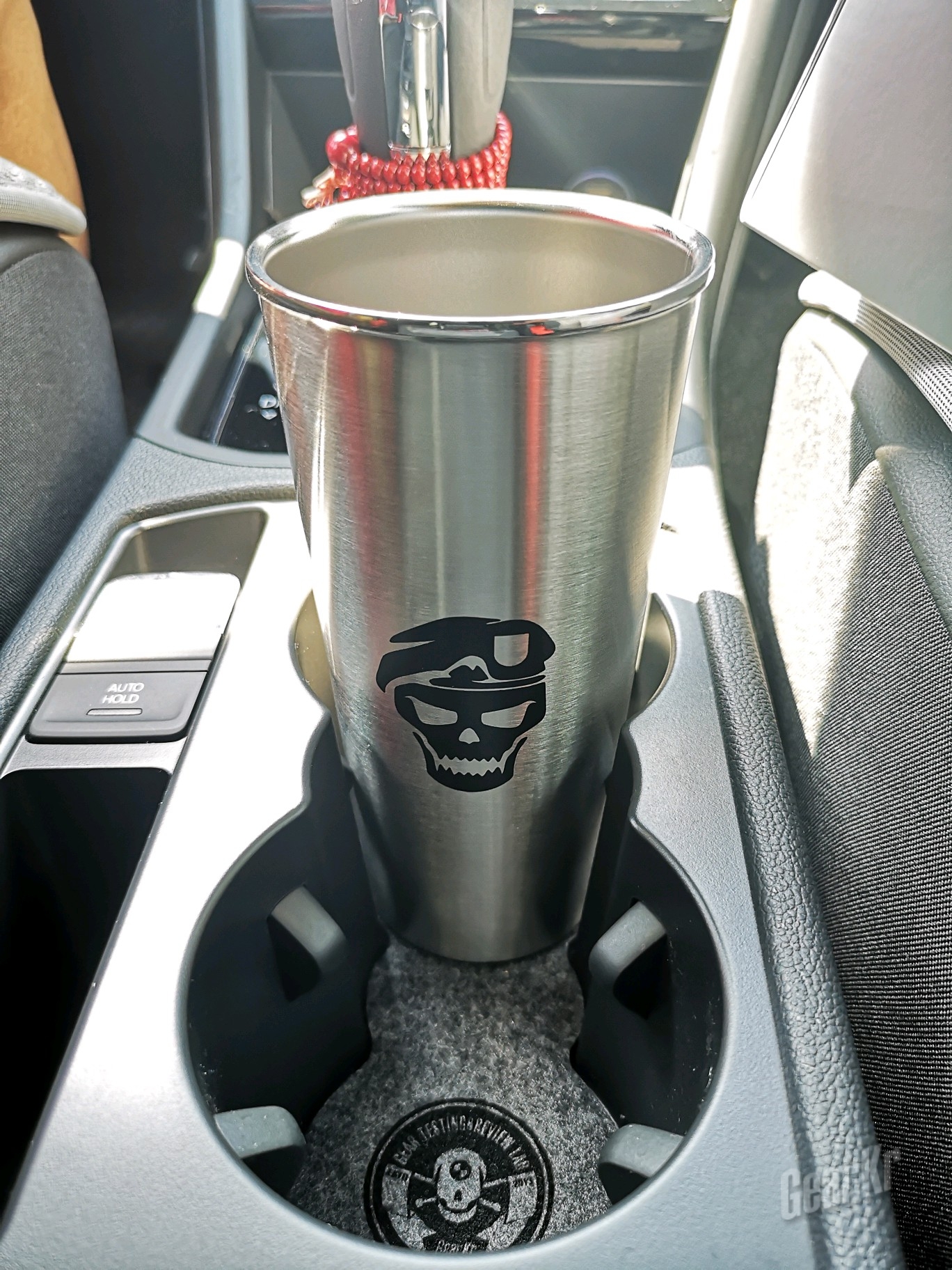 杯体为真空双层结构,虽然大小适中,可以适配大多数家用汽车的杯托杯架,但是没有配杯盖,自驾出行时作为水杯来用的话,切忌装太满,除非,你是打算挑战秋名山最速传说~