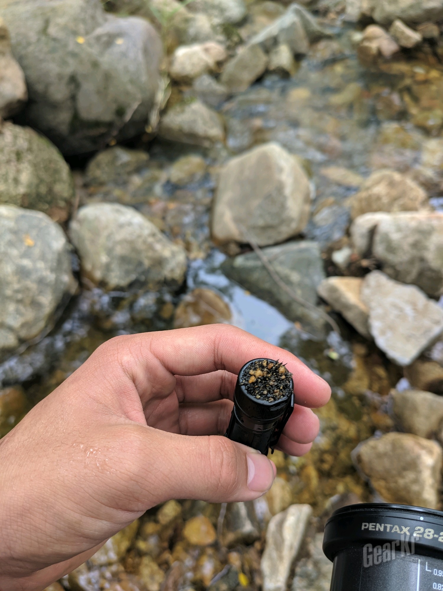 到手尺寸挺小的,原厂的14500电池已经装在手电筒的里面,取出绝缘片就可以直接使用