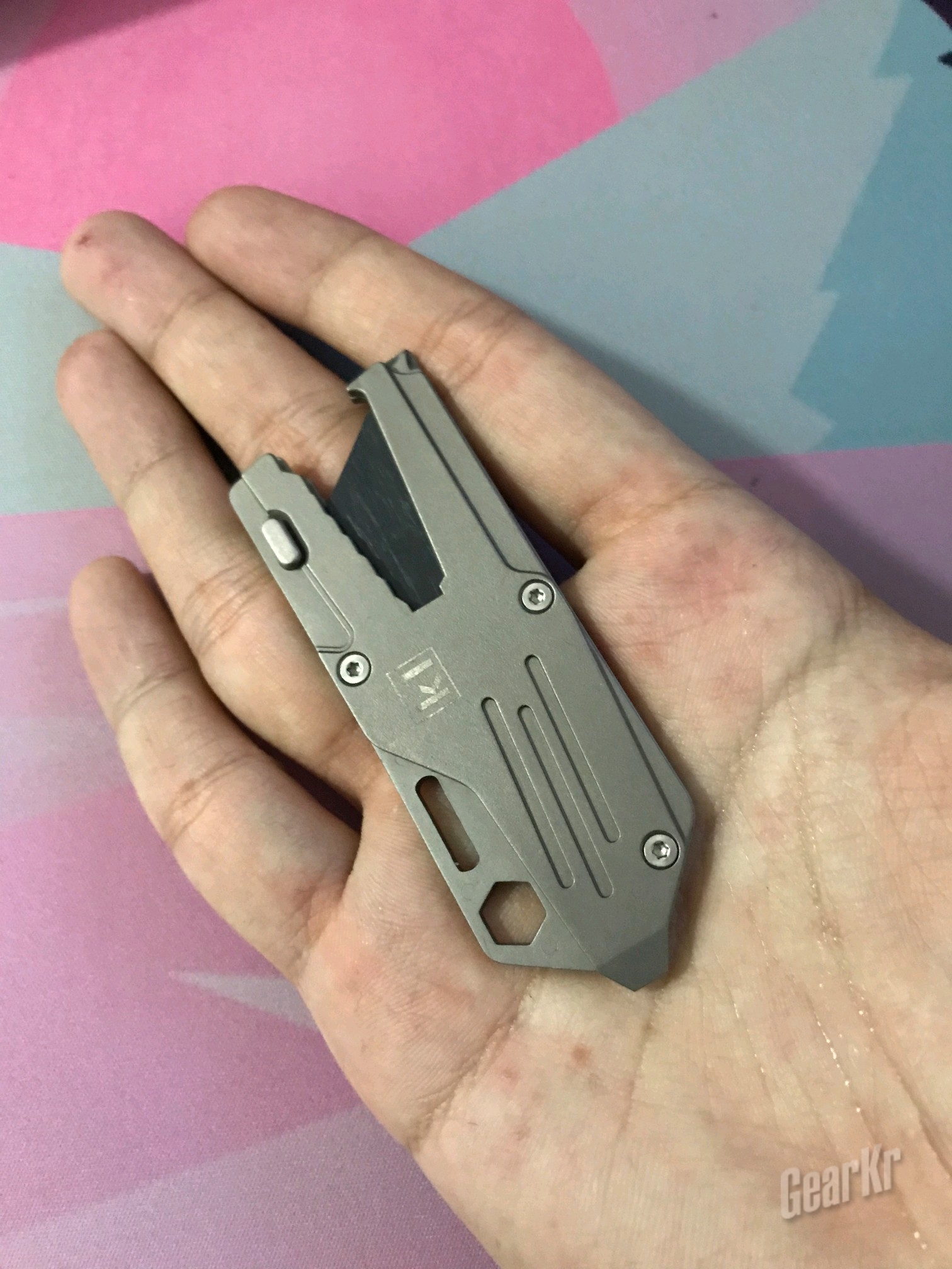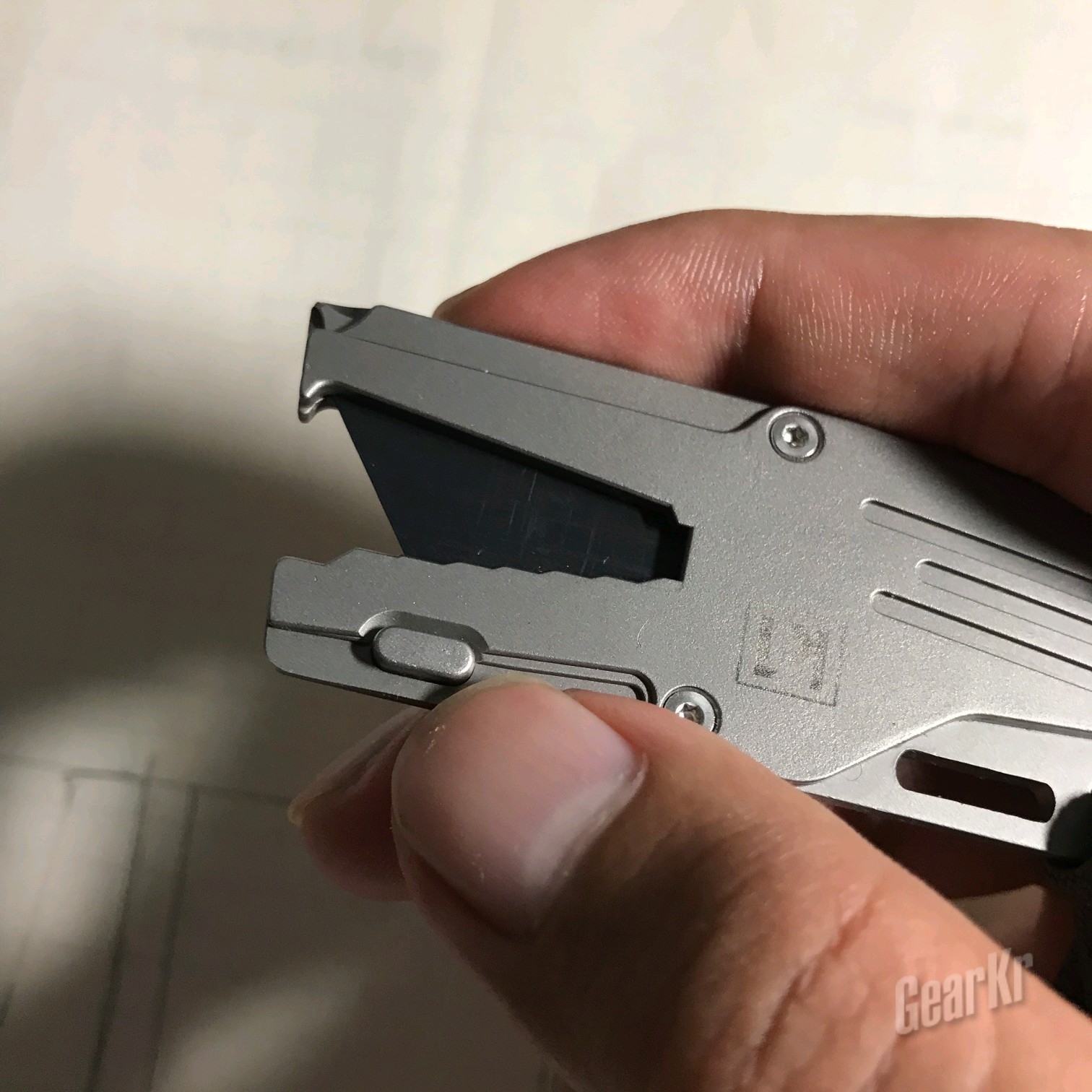 前面说过,k1s采用的是梯形刀片,和rut一样不能单手展开,需要按动释放开关,另一只手拔出刀片。设计上是可以做到两档调节,但是第二档时刀片的晃动太过严重,影响了使用体验,我一般只使用第一档。