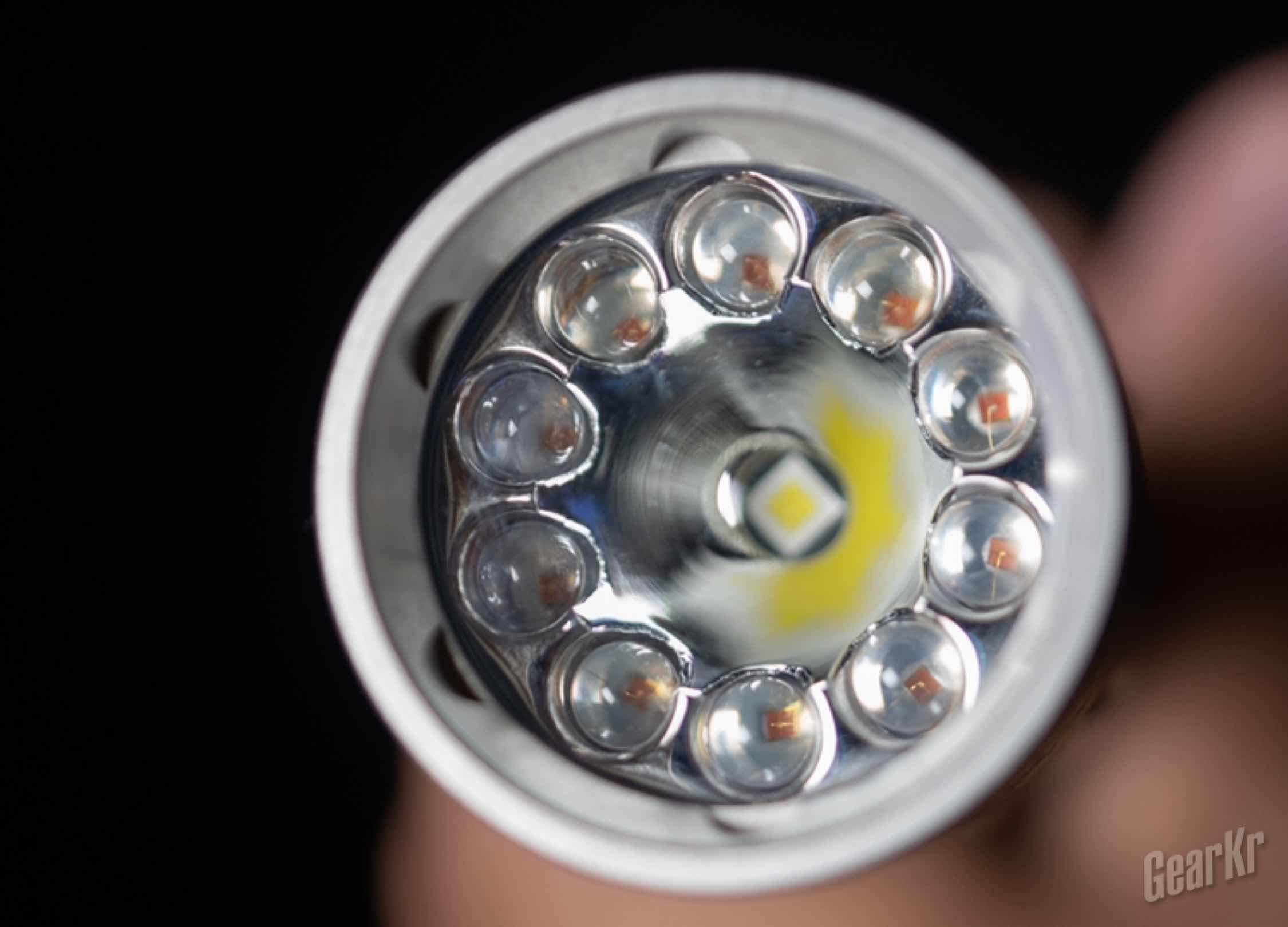 灯头采用的是中间一个 LED 冷光源搭配周围一圈红色补光灯的设计。