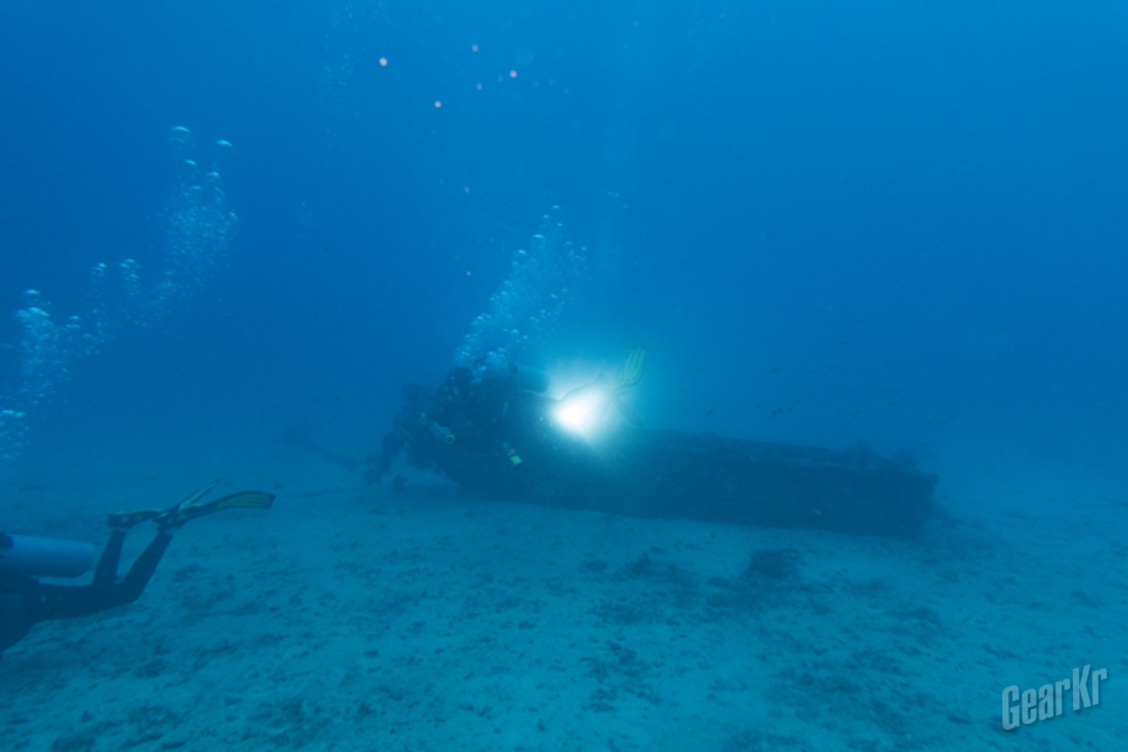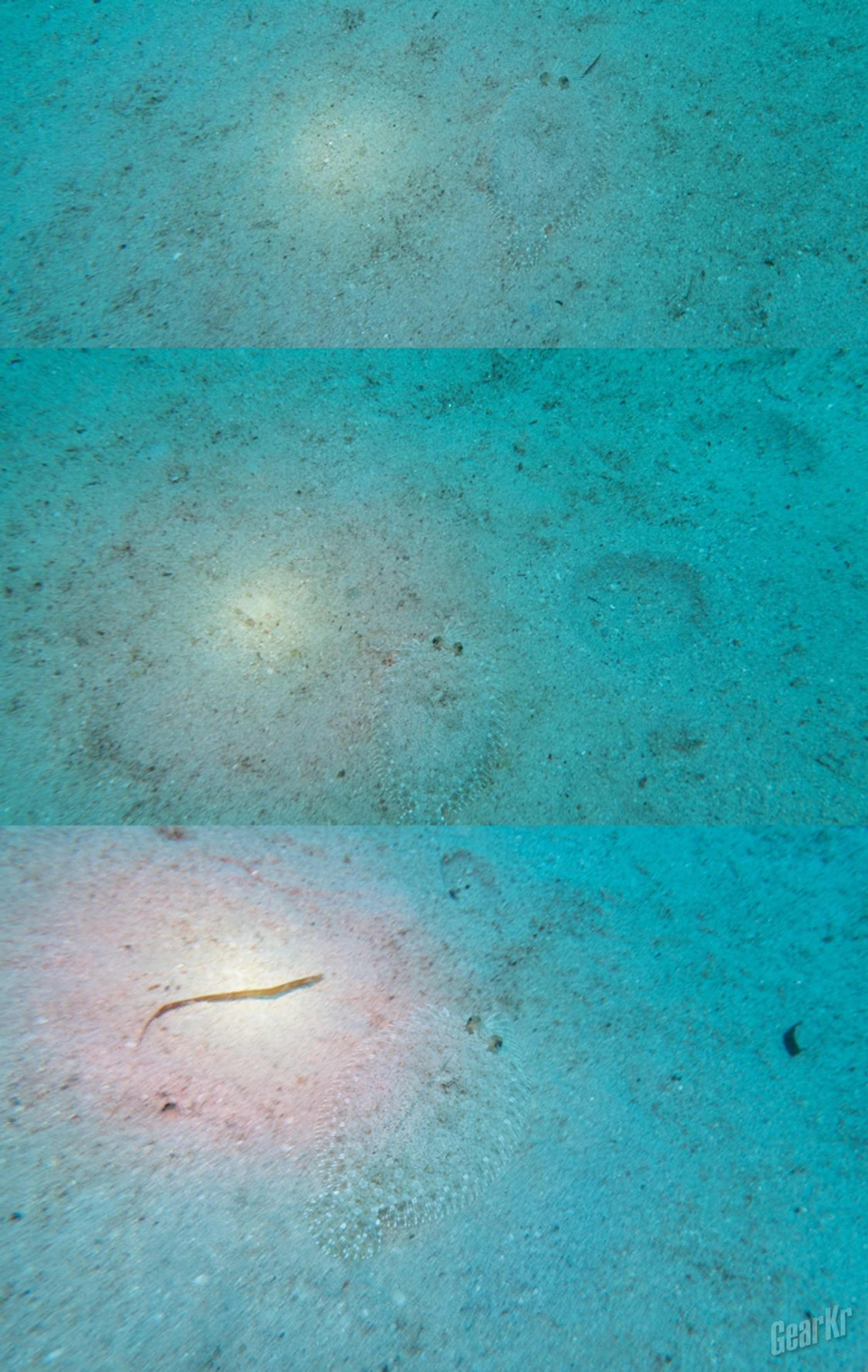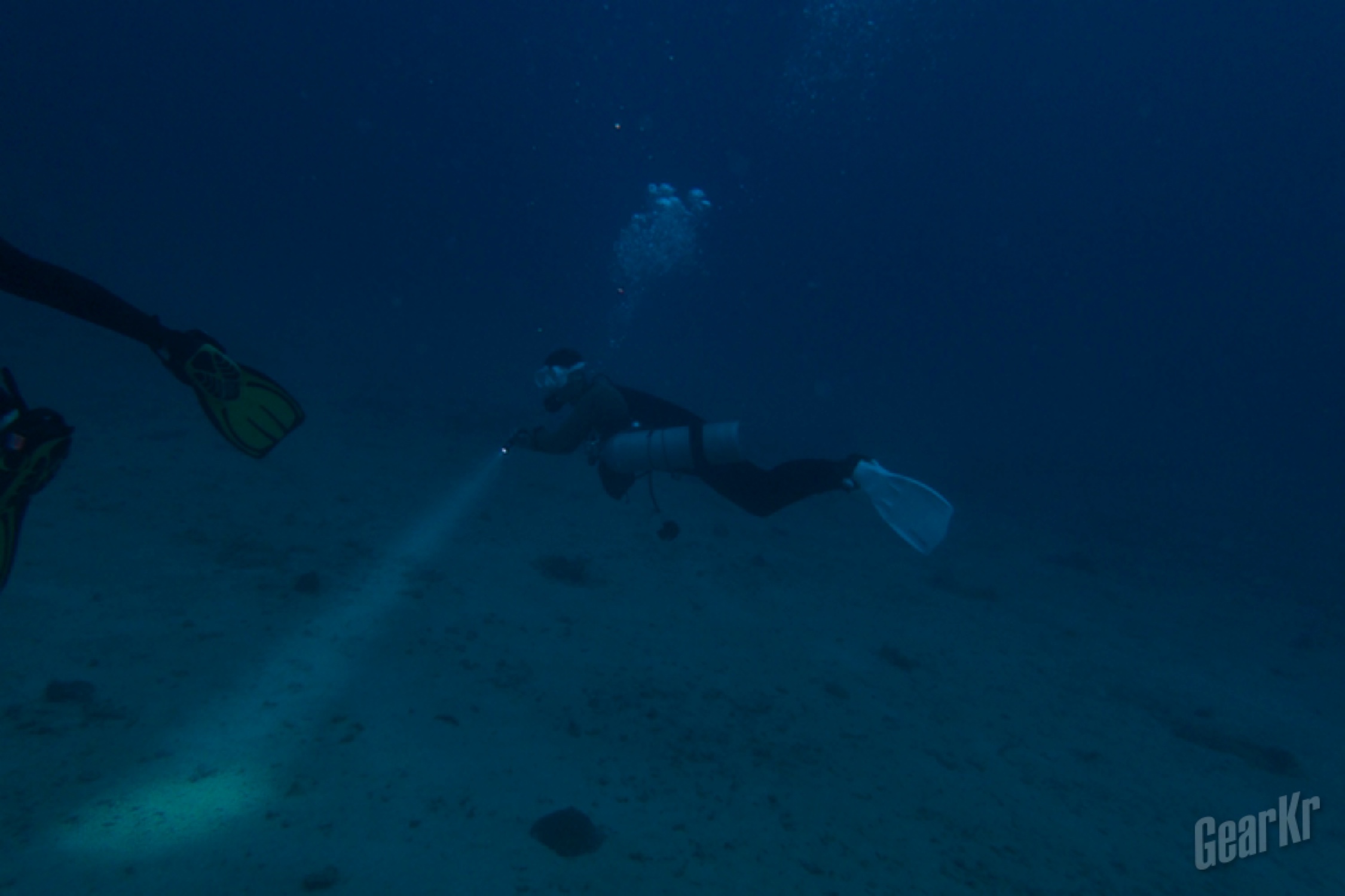 但手电毕竟不是补光灯,所以如果只是使用GoPro 这样的简单设备,到是不建议在远距离进行补光,否则手电照出来的高亮点反而会让 GoPro 这种啥也拍不到,如果你用使用了专业一些的水下摄影器材的话会相对好一些。