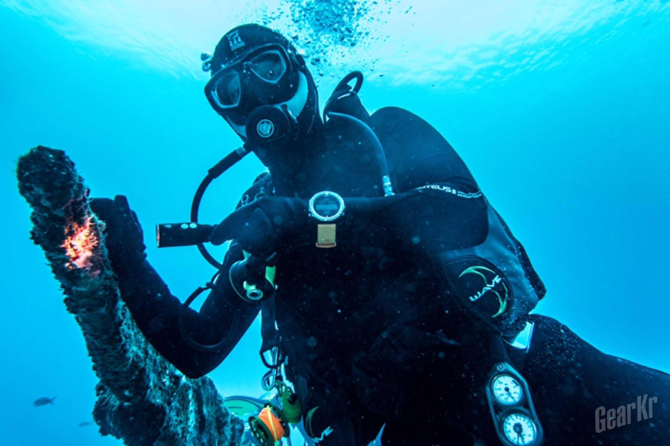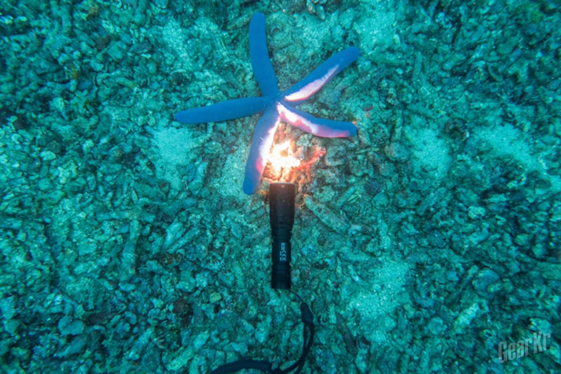 不论白天潜水还是夜潜,带一支优秀的手电是非常有必要的。一般休闲潜水的深度在 15-25 米左右,这个深度的光照还不错,不会太暗。但由于海水对于红色光的吸收,导致海里的一切都褪色成了蓝色或者绿色,所以在水里如果不主动补光,可能就会让你错过很多东西,尤其是具有保护色伪装的动植物。