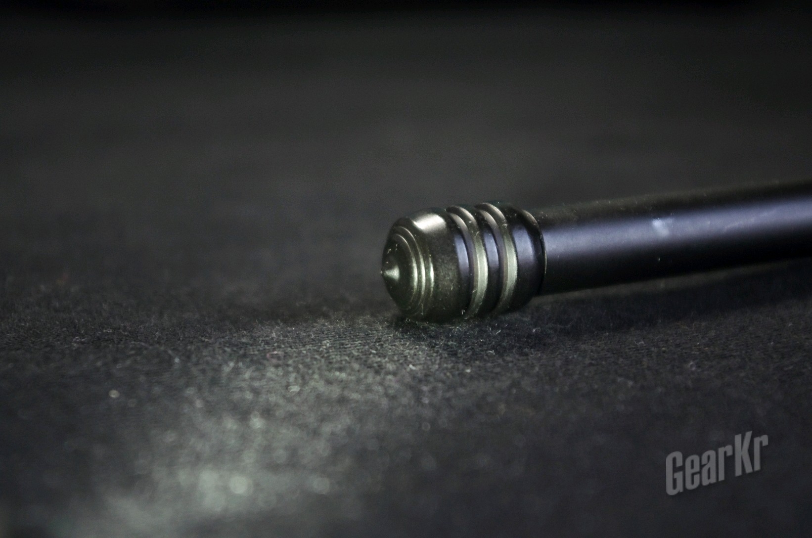 还有一点很不错的设计就是尾盖下面用于解锁的“顶针”,最后一段相比整体稍细一点,在机械棍收起状态下可以防止滑出,同时出棍的时候能感受到锁定的顿挫感十分不错。