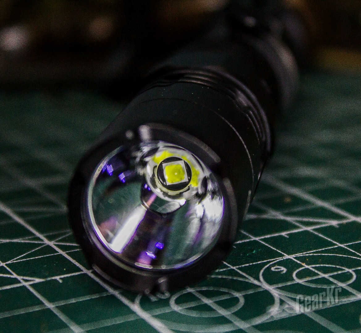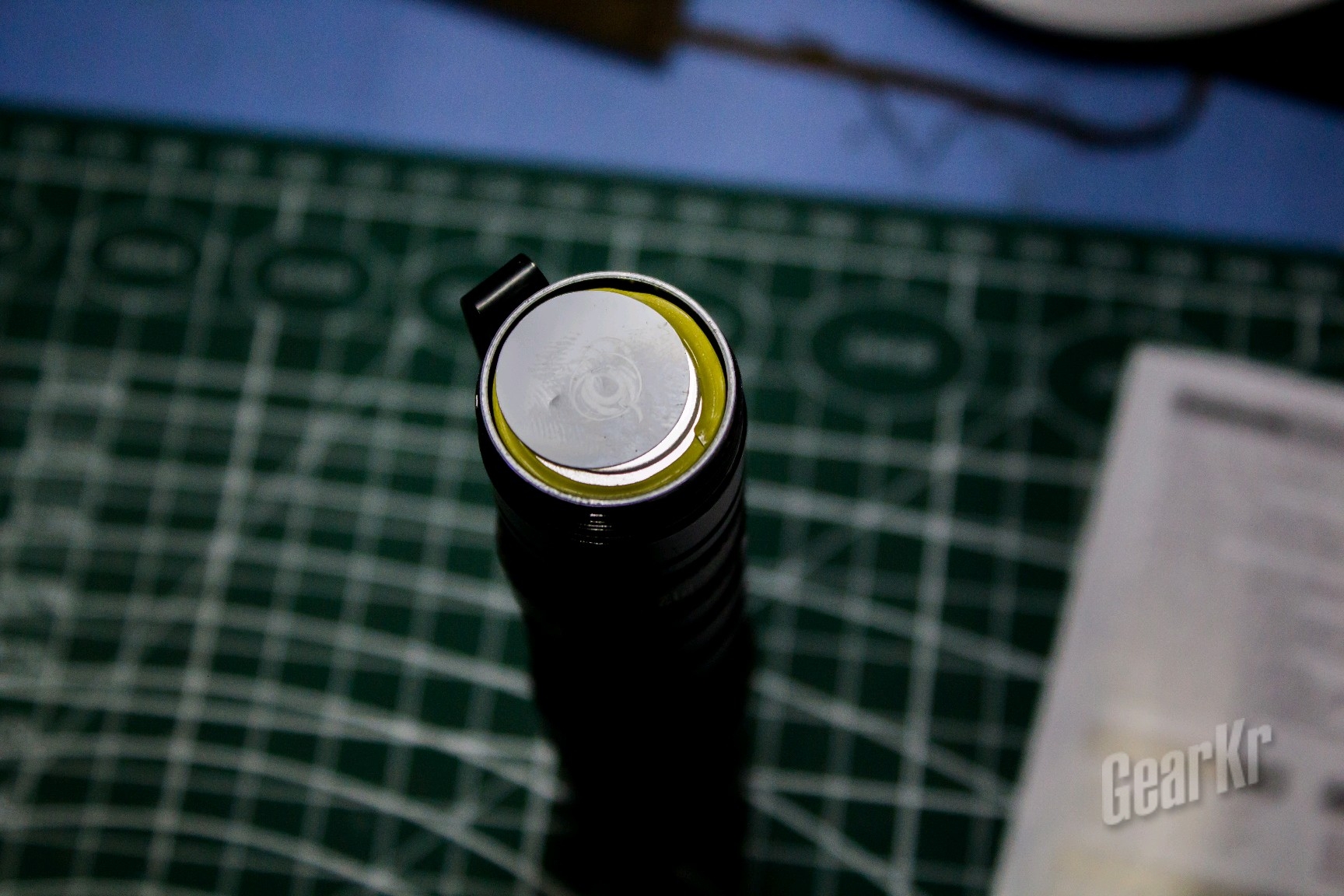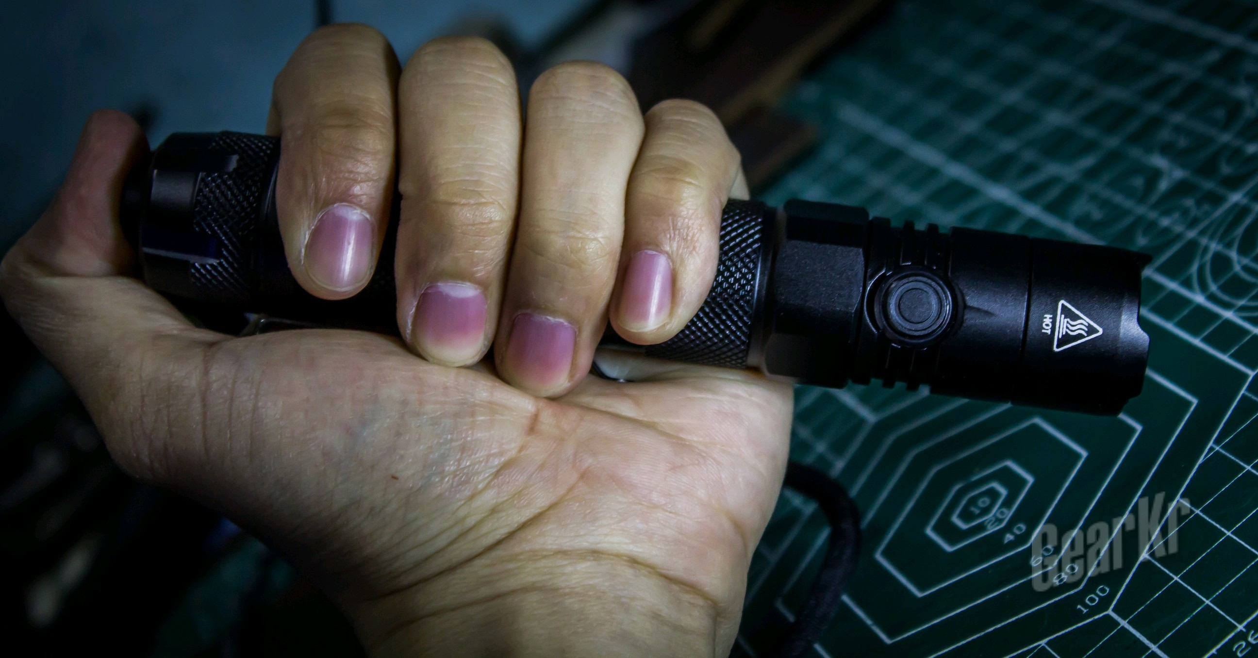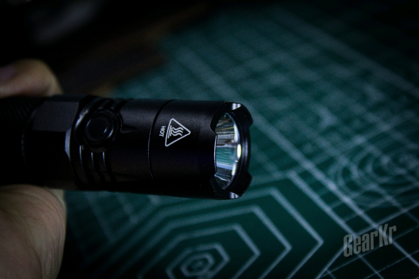而尾控开关则跟上一代是有区别的,变得更加的圆润和突出了,这样一来更方便按动开关,但是也增加了误触的几率,同时也无法使手电立在桌面上了。侧面的控制按钮也变成了圆的,触感比上一代提升了很多。