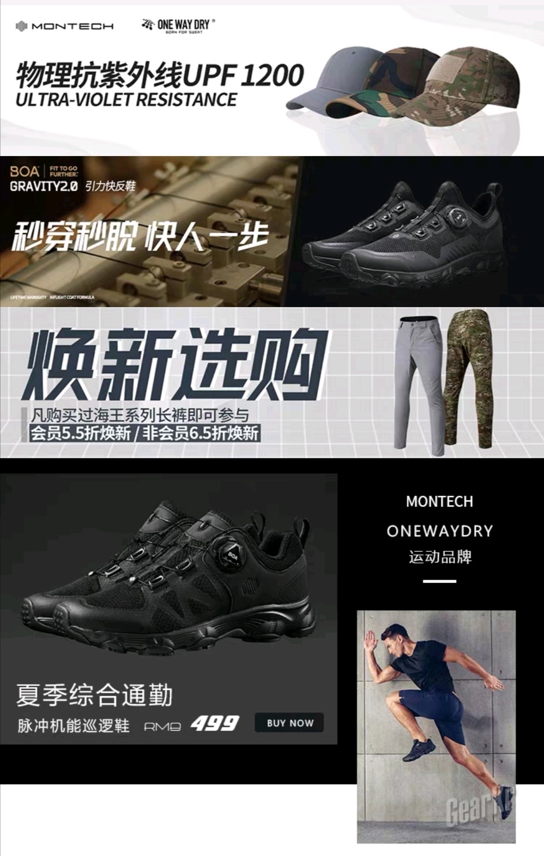 蒙特罗品牌包罗了鞋裤衣帽,其系列产品的主要特性是“单导”。