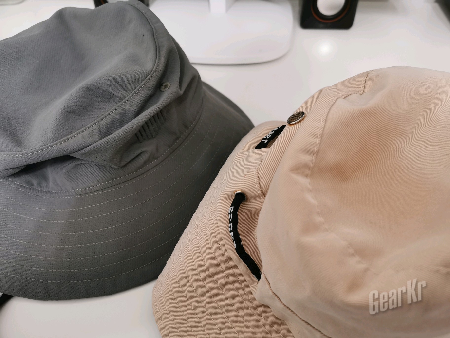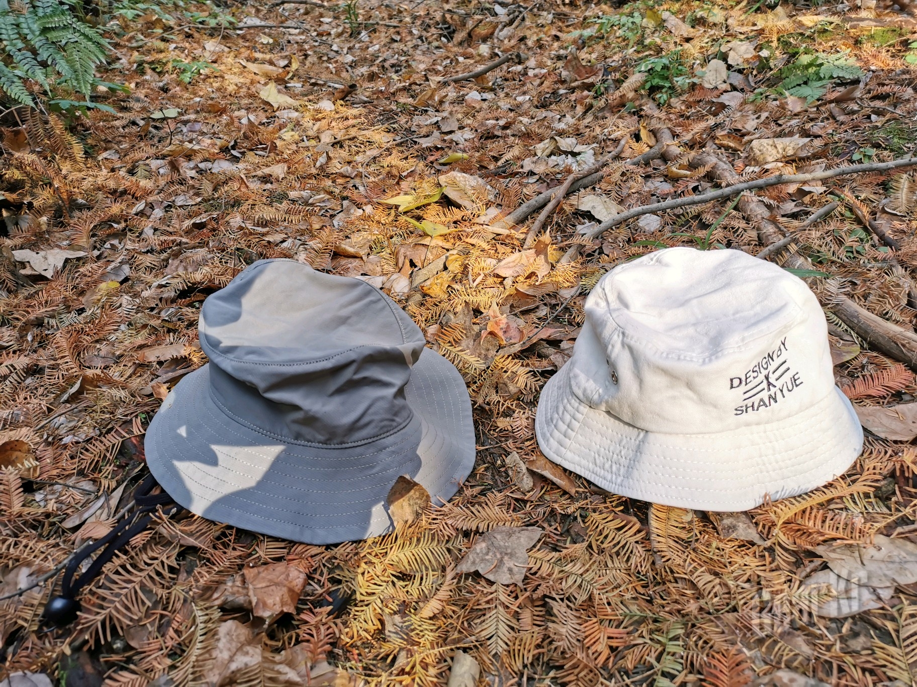对比产品是笔者之前使用的全檐帽,差不多的外观,右边更偏向城市时尚。从下图可以看出,左比右帽沿更长,而帽体部分更软,显得有点塌;