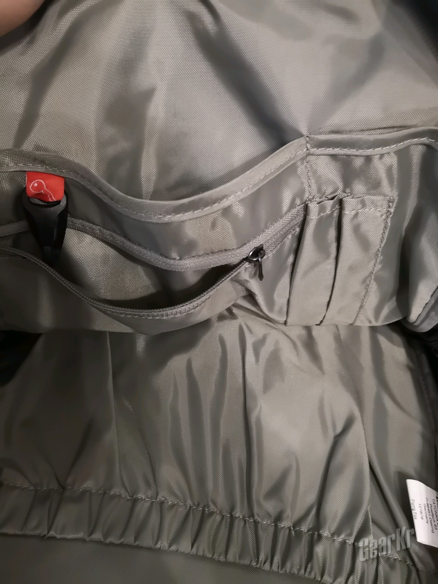 前面的分割袋有很多,可以放一笔、卡之类的小物件,还有一个挂钥匙串的地方。