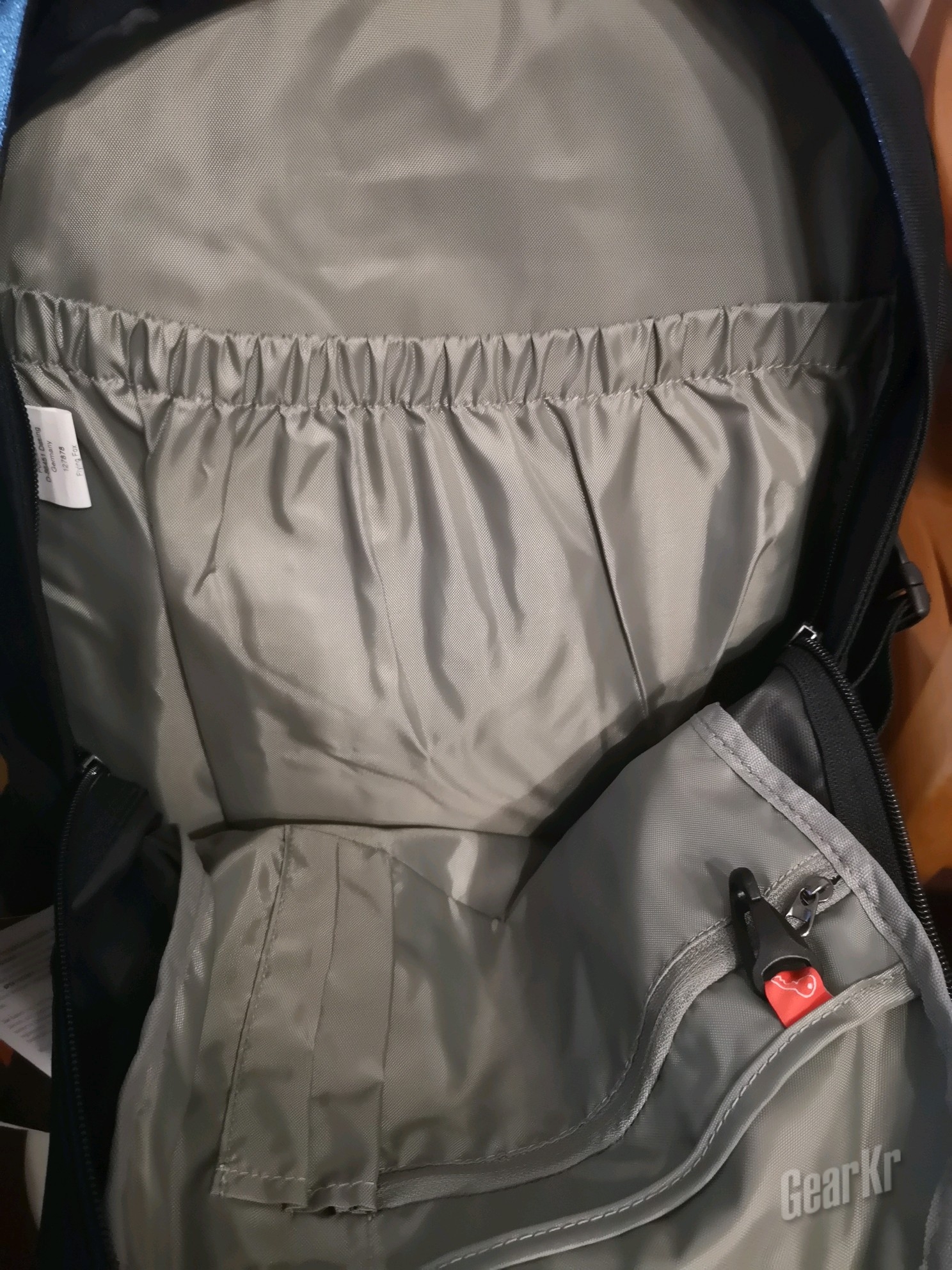 拉开主包里面有很多分隔袋。后面的可以放电脑。