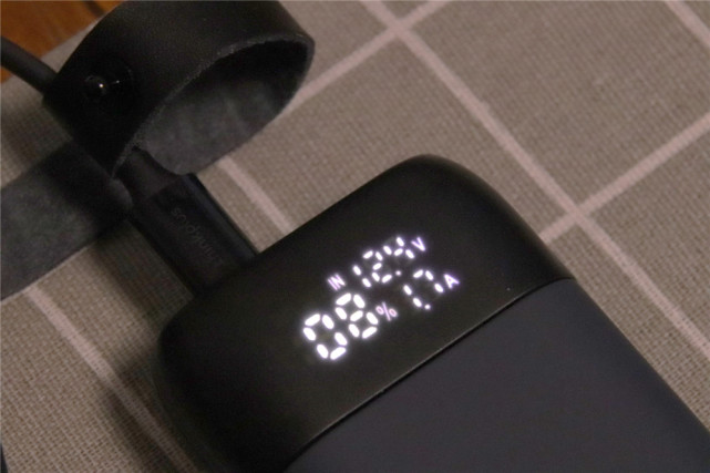 上部黑色磨砂质感塑料部分,带有全数字显示功能。相比大多数仅靠几个指示灯显示电量和状态的充电宝而言,PB2S显然更加直观。不仅可以看到剩余电量百分比,还可以实时显示充放电时的电压和电流。下次遇到别的充电宝,可以放心怼一句:有木有电,你自己心里没点逼数吗?