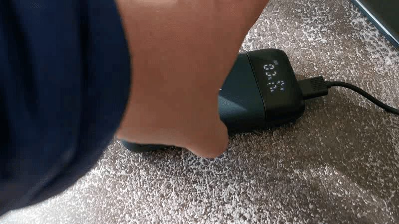 至于充电仓内的蓝色丝带,在安放电池时记得把它压在下面,取换电池时只需单手轻轻一拉即可。