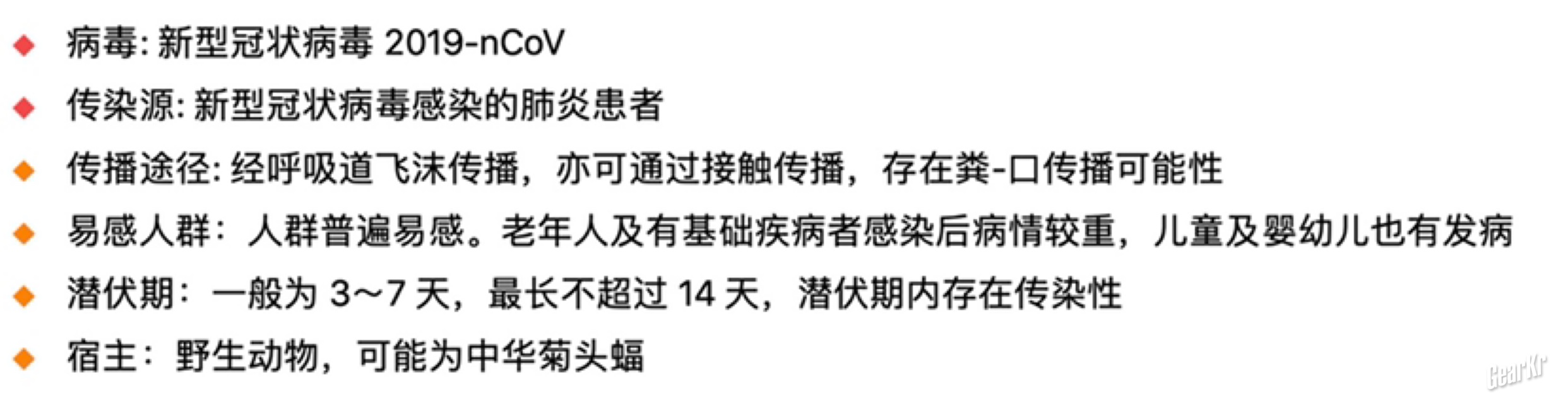 这几条信息天天看实况都看得到,但你有没有认真去思考。这里面的传染源、传播途径、易感人群、潜伏期、宿主,都是值得你认真对待的内容。知道了传染源就要避免接触传染源;了解了传播途径,就要在这几个途径上去做好阻隔;根据易感人群可以合理安排家中对应人群的活动情况;潜伏期可以便于你做一些推算,比如按潜伏期14天来计算,基本上全国人民开始重视并进行控制是在大年三十前一两天的事,之前武汉方面有大量人员流动,按14天潜伏期来看,如果年三十的时候就控制的比较好的话,大面积的爆发也就持续到元宵节左右了。看到这个宿主我真是服了这帮人了,蝙蝠都已经尽量长得不像食物了,你们竟然还吃得下。