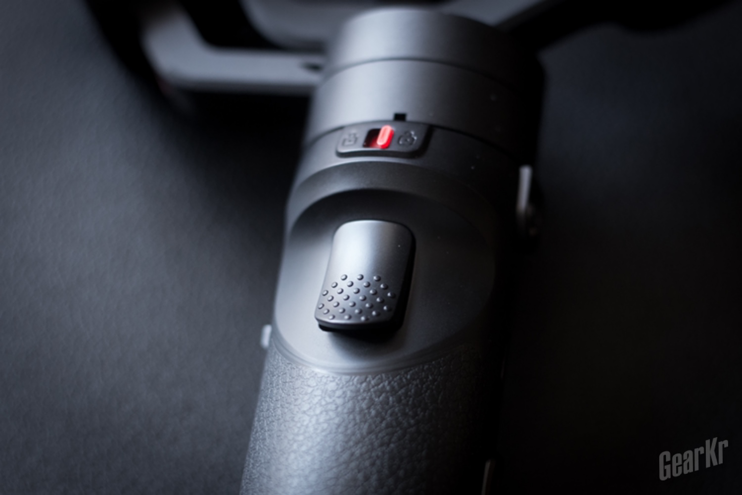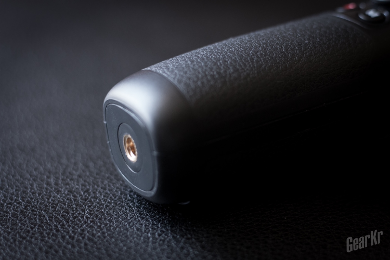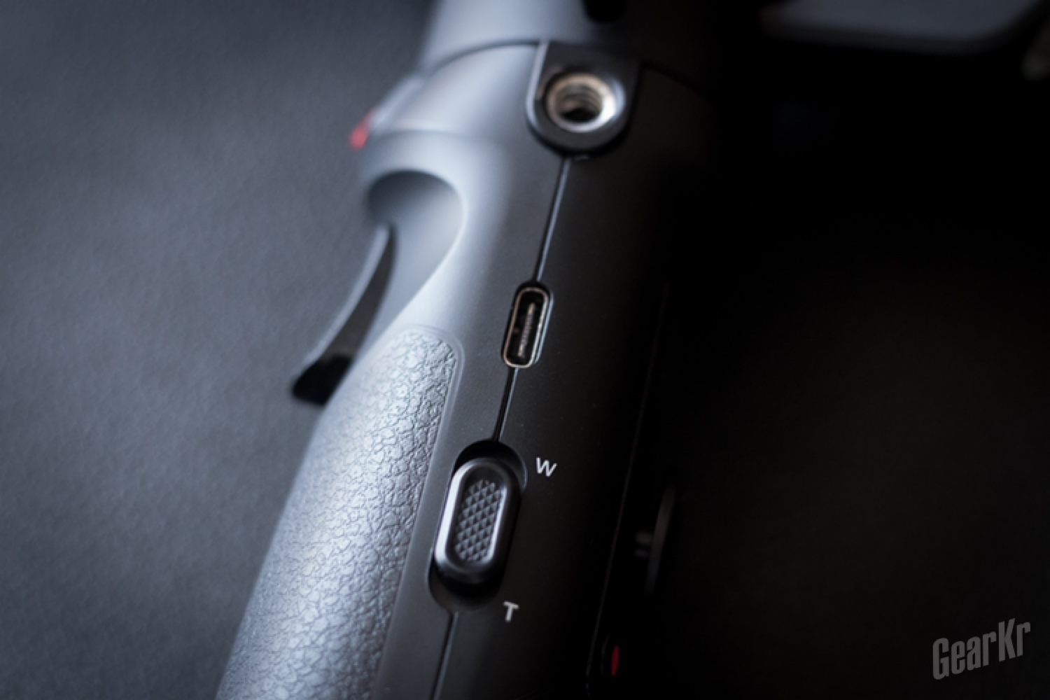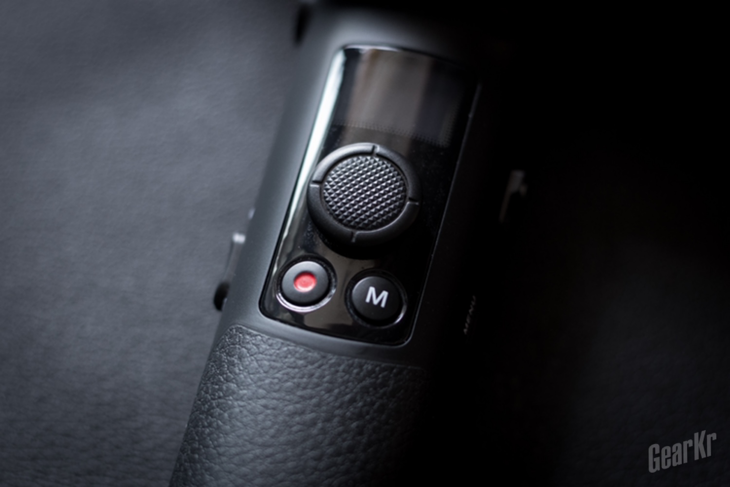 不仅长度缩减,正面还加入了长方形的OLED屏幕,OLED屏的菜单只能显示文字和图标,非常功能化,需要吐槽的一点是只有英文菜单,并不支持中文。屏幕下方是录像键和M键(Mode/模式),手柄正反两面手掌接触的区域都做了皮革纹的处理。