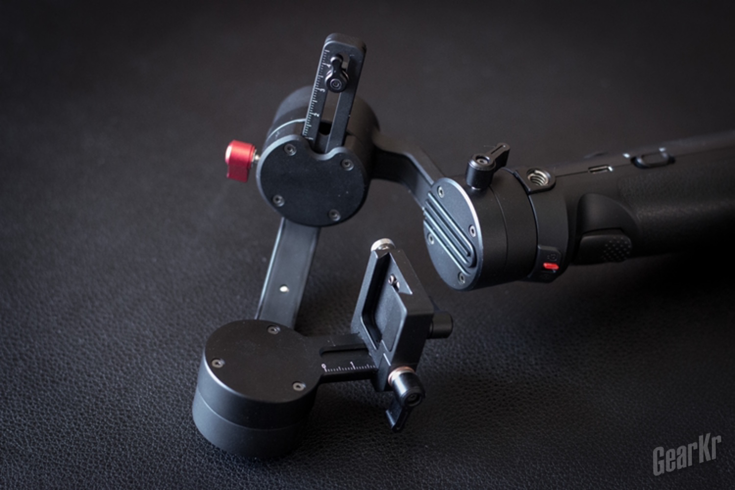 第一次调平确实有些麻烦,一共有三个轴需要调整,调整到合适位置锁紧就可以了(App里有教程),最麻烦的部分应该是手机横屏立起调俯仰轴,因为重心实在不好掌握。这次CRANE M2搭配了快装板,三个轴位包括快装板上都有刻度表,其中俯仰轴和航向轴都不需要改变位置,只有横滚轴为了收纳折叠需要解除锁紧,所以特意在横滚轴上添加了一个定位锁扣,在横滚轴第一次调平完成后可以将定位锁扣紧贴轴体位置完成定位,方便收纳后再次安装直接抵住定位旋钮,无需再调节。整体设计在简化和实用上做到了一定平衡。