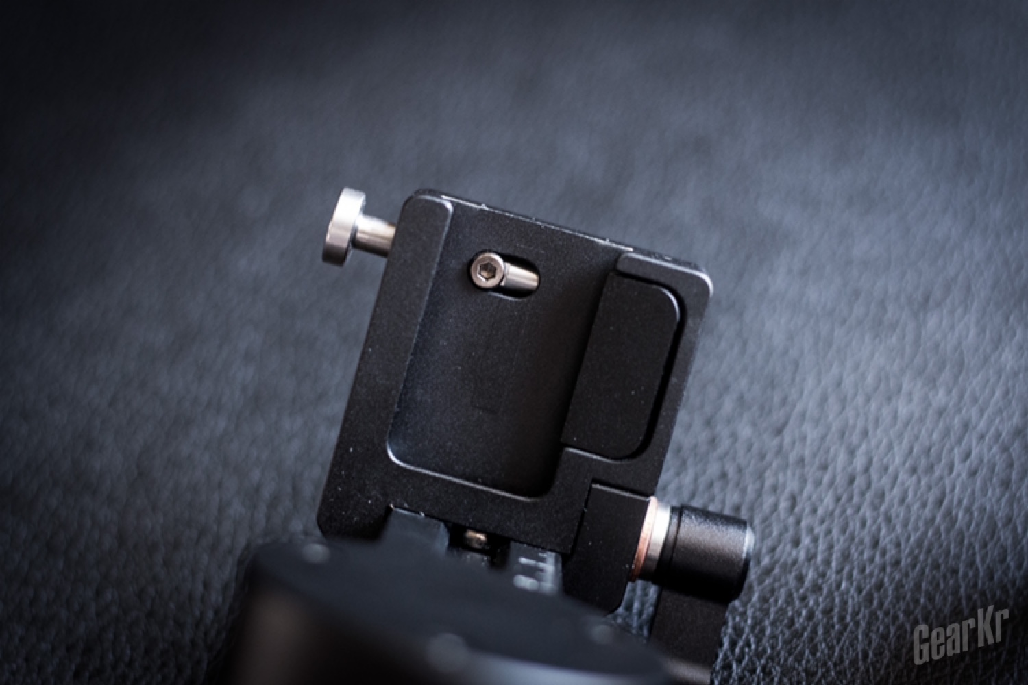 此外,快装板拆卸过程中需要解除一个在相机三脚架上常有的安全释放按钮,这个设计很管用,就算你没有扭紧螺钉,云台也不会意外脱落。