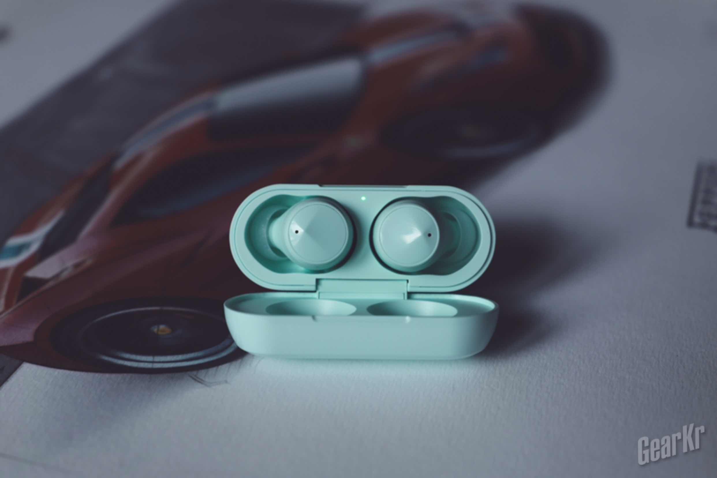 打开盖子就能看见充电盒,绿色还是让人觉得眼前一亮,治愈了大多数耳机非黑即白配色的审美疲劳。盒中的配件为:耳机主体(2只耳机及充电盒)、替换硅胶耳塞2对(S码与L码)、说明书1本(中英双语)、Type-C充电线1条、合格证1个。