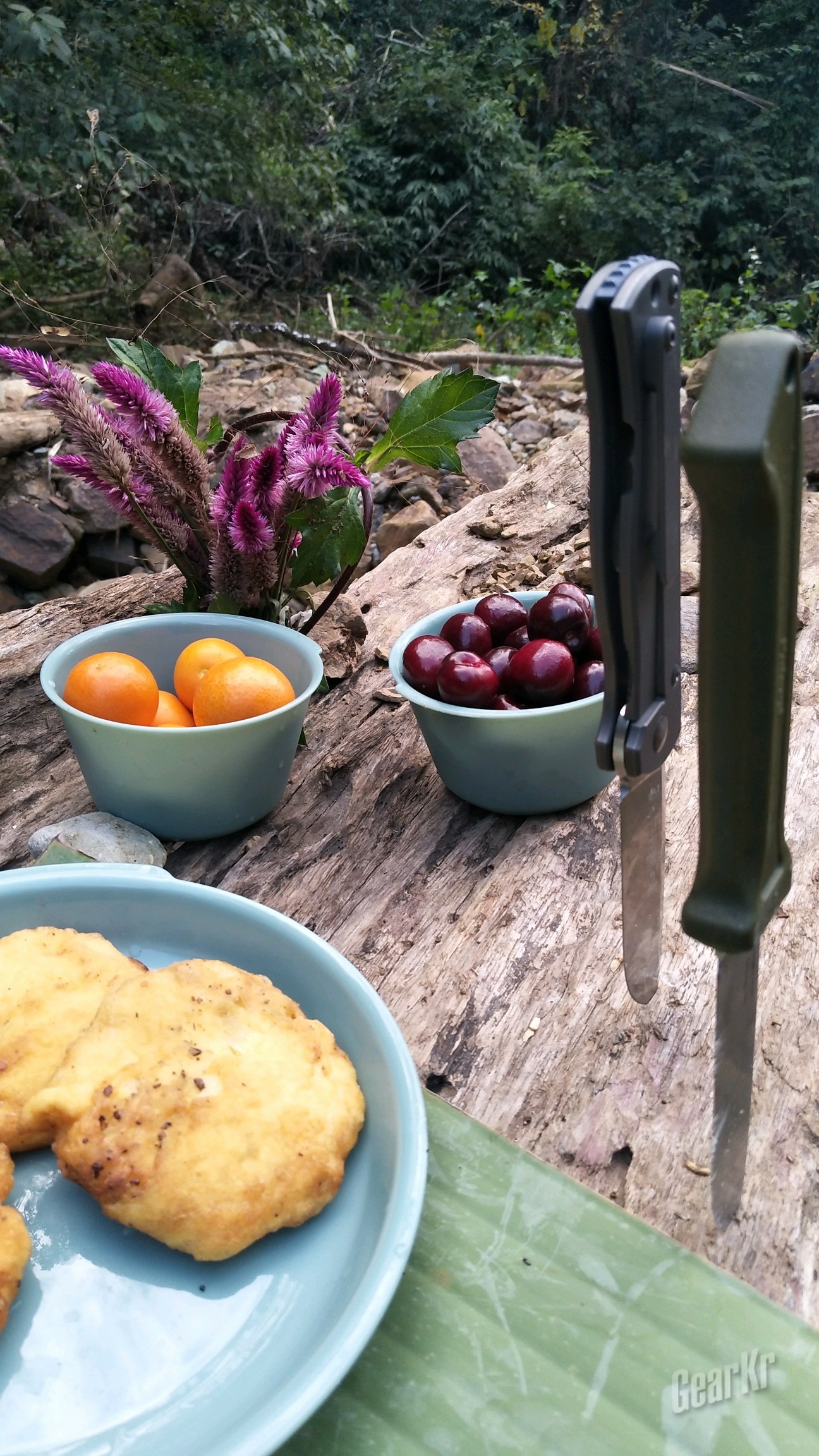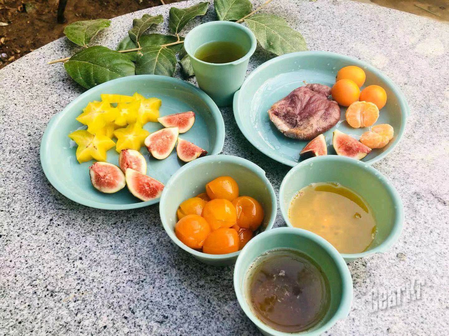 本来想假期里带着家人一起户外野炊的,可以很好体验这套餐具的价值,然而恰逢疫情严重,只能宅在家里,不过不能影响心情,让媳妇拿出新餐具,摆上水果食物,院子里小石桌,喝点果汁喝点茶,挺好。