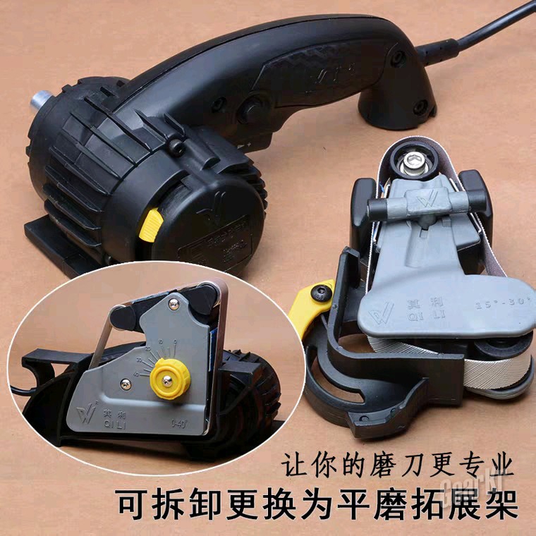 本人经历了手动定角磨刀器,砥石到这个手持砂带机的辛酸历程。