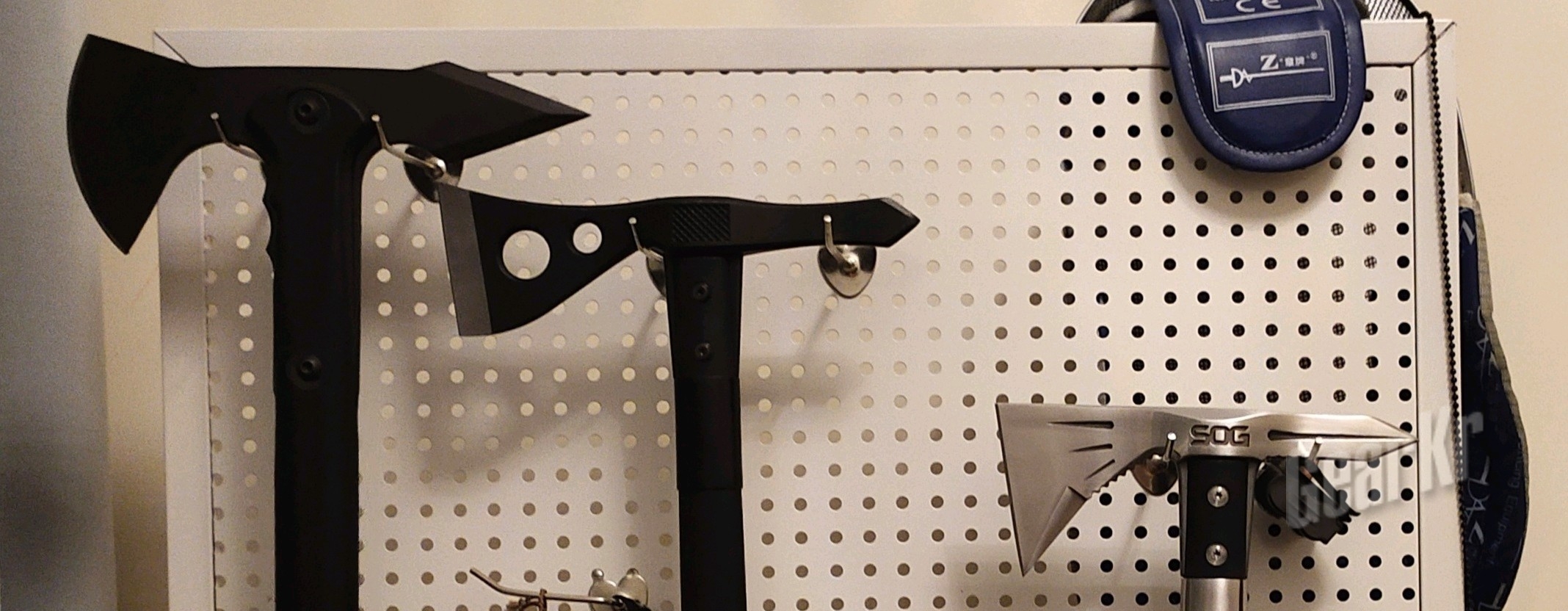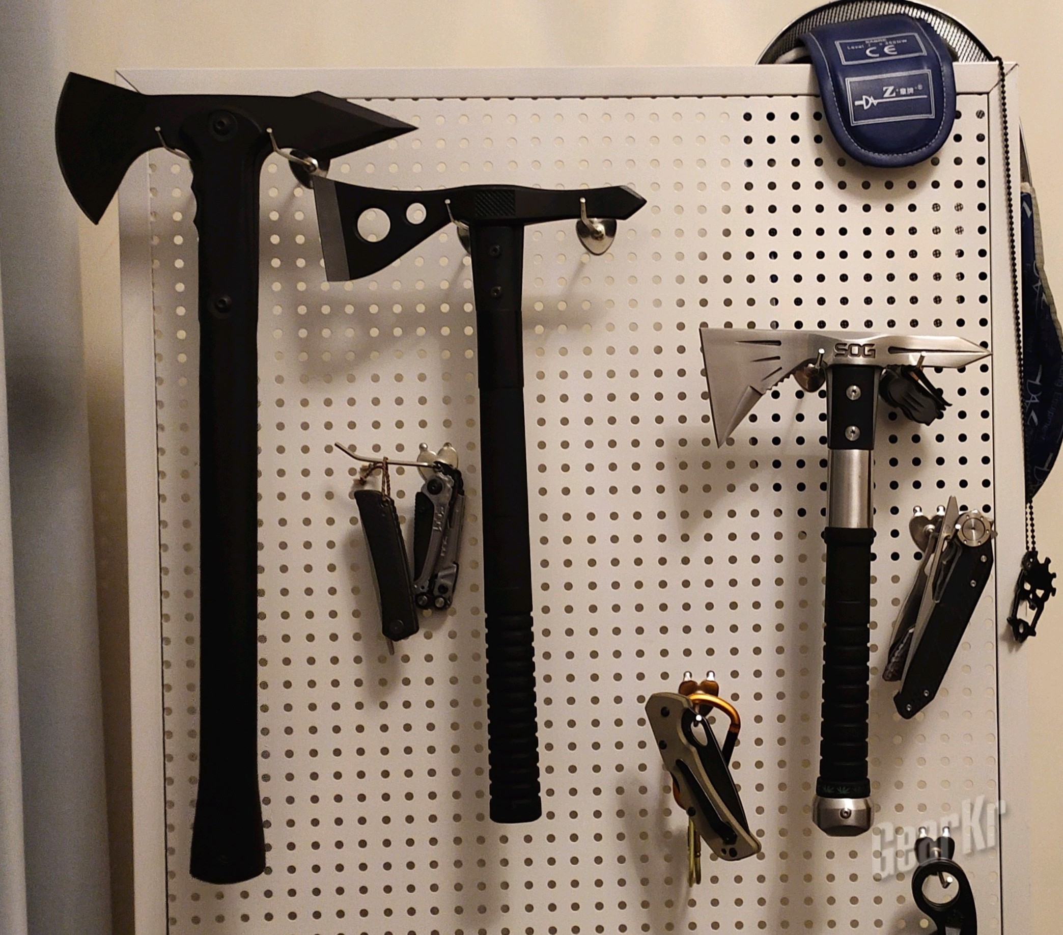 三把斧子分别是冷钢战壕和SOG的F01、巫毒MINI。我会通过尺寸、手感、鞘、设计、工艺这几个方向进行简单的对比。