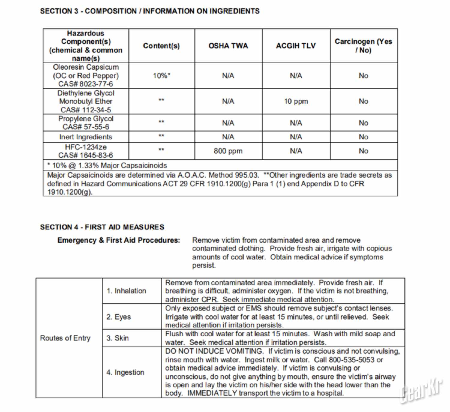 在这种情况下,3-IN-1配方便诞生了,有人发现在OC为基体的制剂中混入少量CS或CN便能起到多重反应,OC提供了快速起效和强封眼效果,也改变了组织的渗透性,可以让CS或CN更快产生刺激,甚至比OC本身还要快。CS或CN增加了控暴剂的打击范围和呼吸道刺激,也进一步增强了皮肤的痛觉刺激程度。虽然诸如沙豹绿松石或禽兽止步之类的型号也能通过单纯的OC达到媲美3-IN-1制剂的效果,但是前者依靠的是实验性的新型凝胶起到物理封眼的作用,对威力本身并没有质的提升;后者是针对野兽设计的超浓配方,用在人类身上可能会导致危险的过敏性休克。而3-IN-1配方能在标准的1.33%OC浓度基础上做到执法或民用型喷雾中最棒的制服效果,兼顾了安全与威力。唯一的问题是,目前为止3-IN-1制剂的生产成本依然居高不下 ,这些化学药剂每年的产能都是有限的,客观技术难度也让仿制它们变得尤为困难。还记得梅西(MACE)吗?他们最先将控暴剂推广至民用防卫领域,但是在3-IN-1配方上却无法追赶后来居上的沙豹(SABRE),只能退而其次使用OC+CN+UV染剂的组合,当然,这个配方的效果自然比不上沙豹的OC+CS+UV染剂,但也比纯OC配方来的更为有效。
