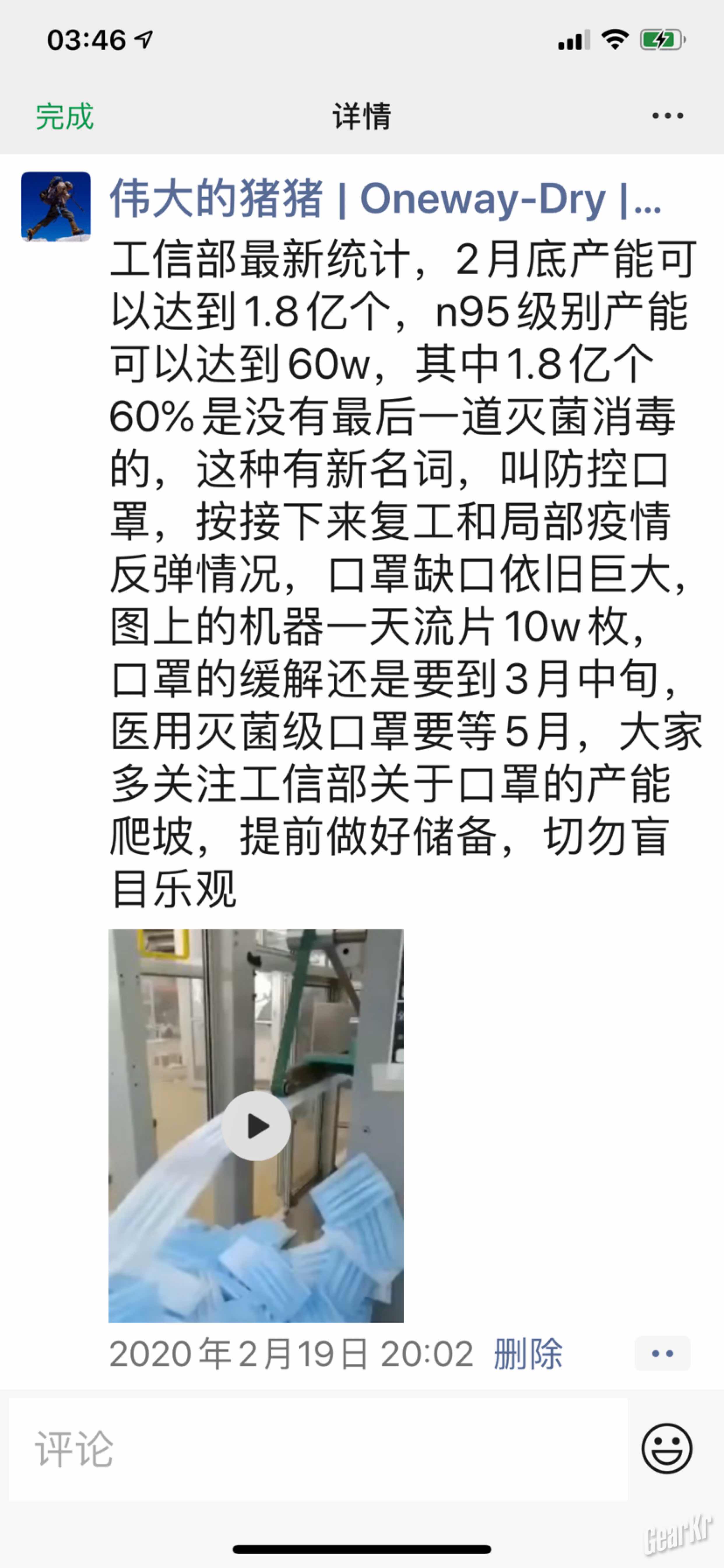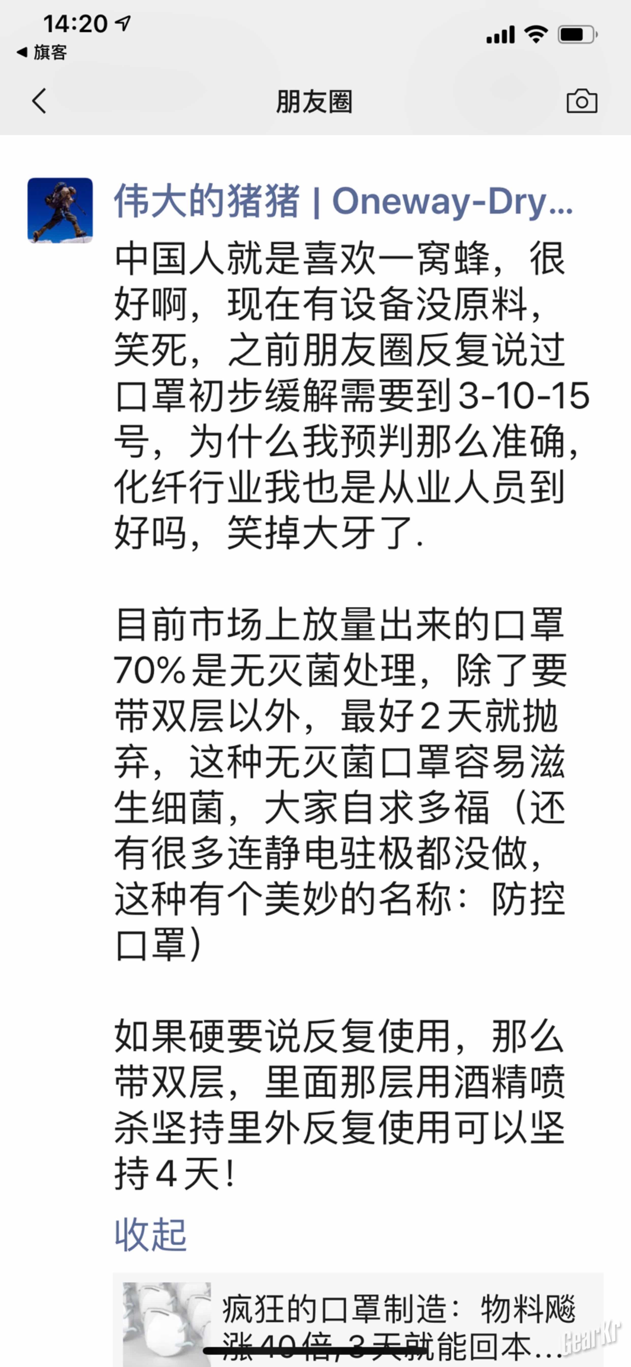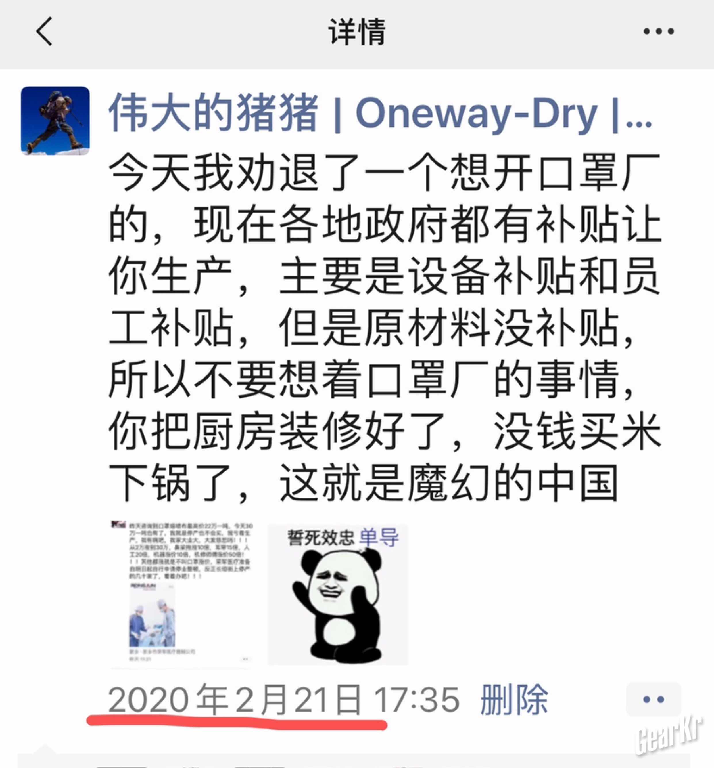 这是2月21号劝退想开口罩厂兄弟的截图
