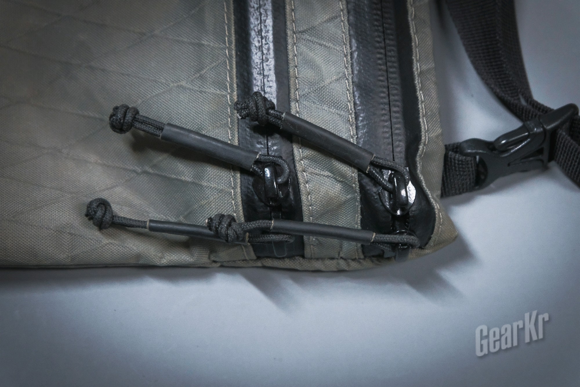 笔者这个采用的是Xpac面料,Xpac面料的特点是在外层面料(如考杜拉、尼龙或涤纶)内复合一层交叉排列的X-ply涤纶线加固,背面根据型号的不同复合透明的pet防水膜或者尼龙布 、涤纶布等。Xpac的重量主要取决于外层面料,但强度会大大高于外层面料。