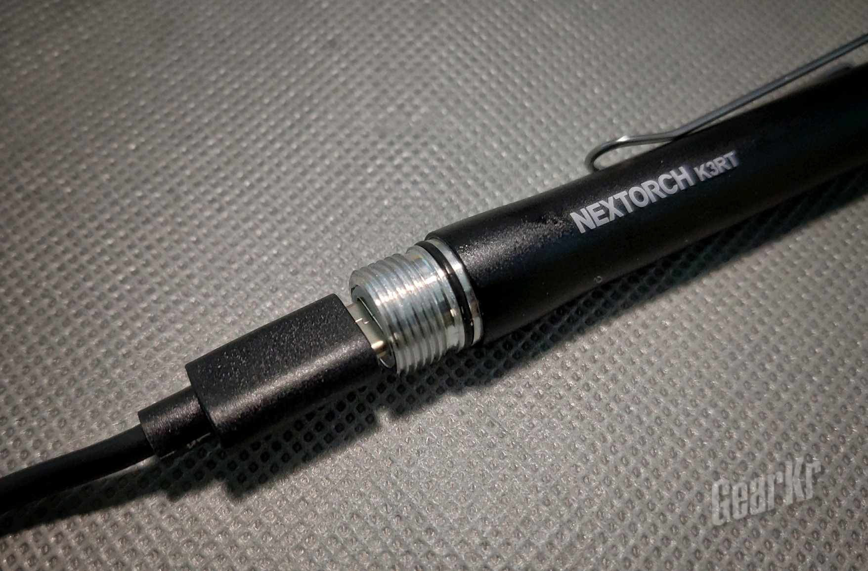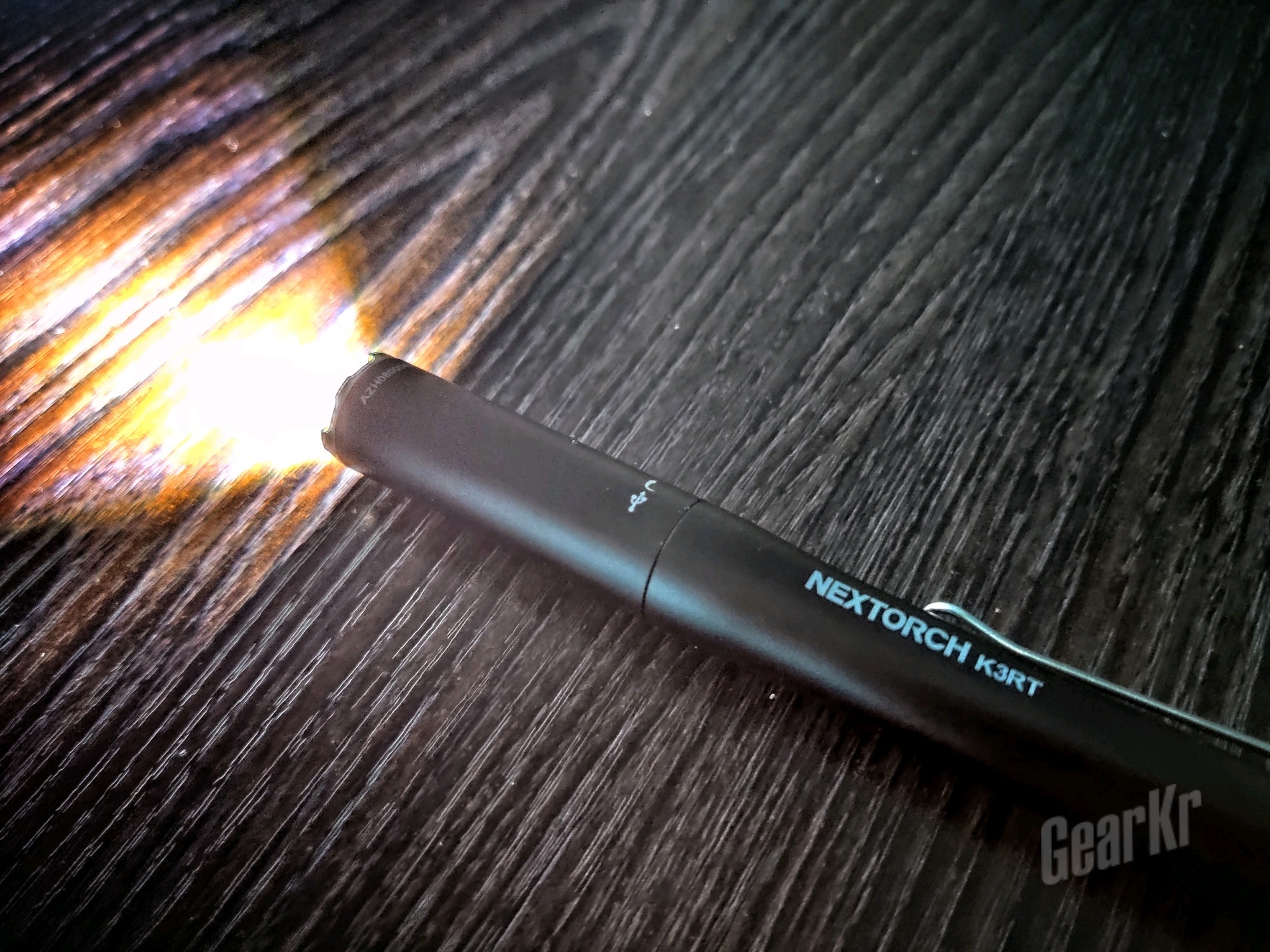 K3RT需要充电的时候,拧开筒身,通过Type-C接口充电,接通电源后,指示灯会闪烁,这时需要重按下尾部开关,才能开启充电。充电进行时,指示灯会显示红色,一般情况下,充满电需要两个半小时左右,充满电后指示灯会显示绿色。K3RT和K3T在亮度对比上,K3T最高亮度在215流明,K3RT最高亮度330流明,K3RT更胜一筹。