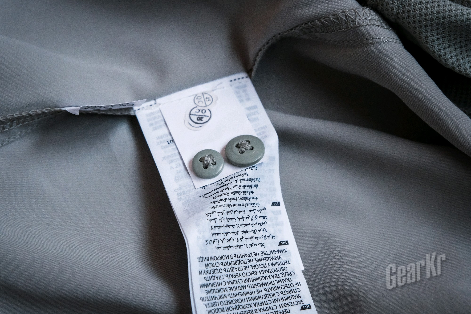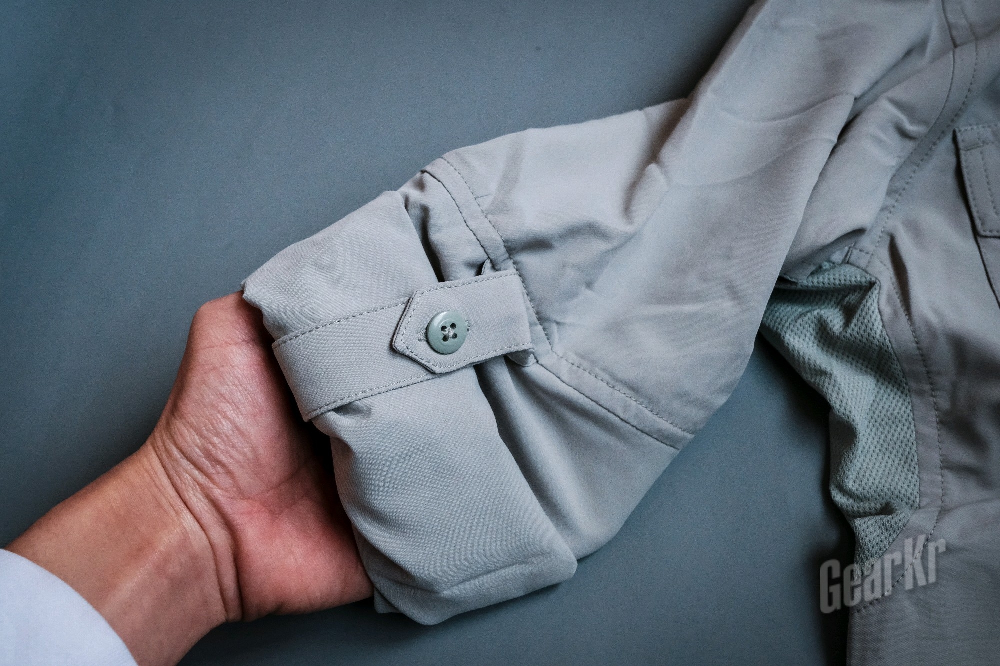 因为面料比较软,领子处有加厚的设计。袖子里面有也束带以防袖子挽起当短袖穿的时候掉落。