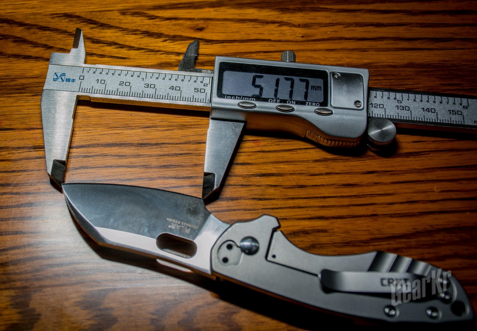 实测刀片最厚的地方为3.68mm,刃长大约52mm。