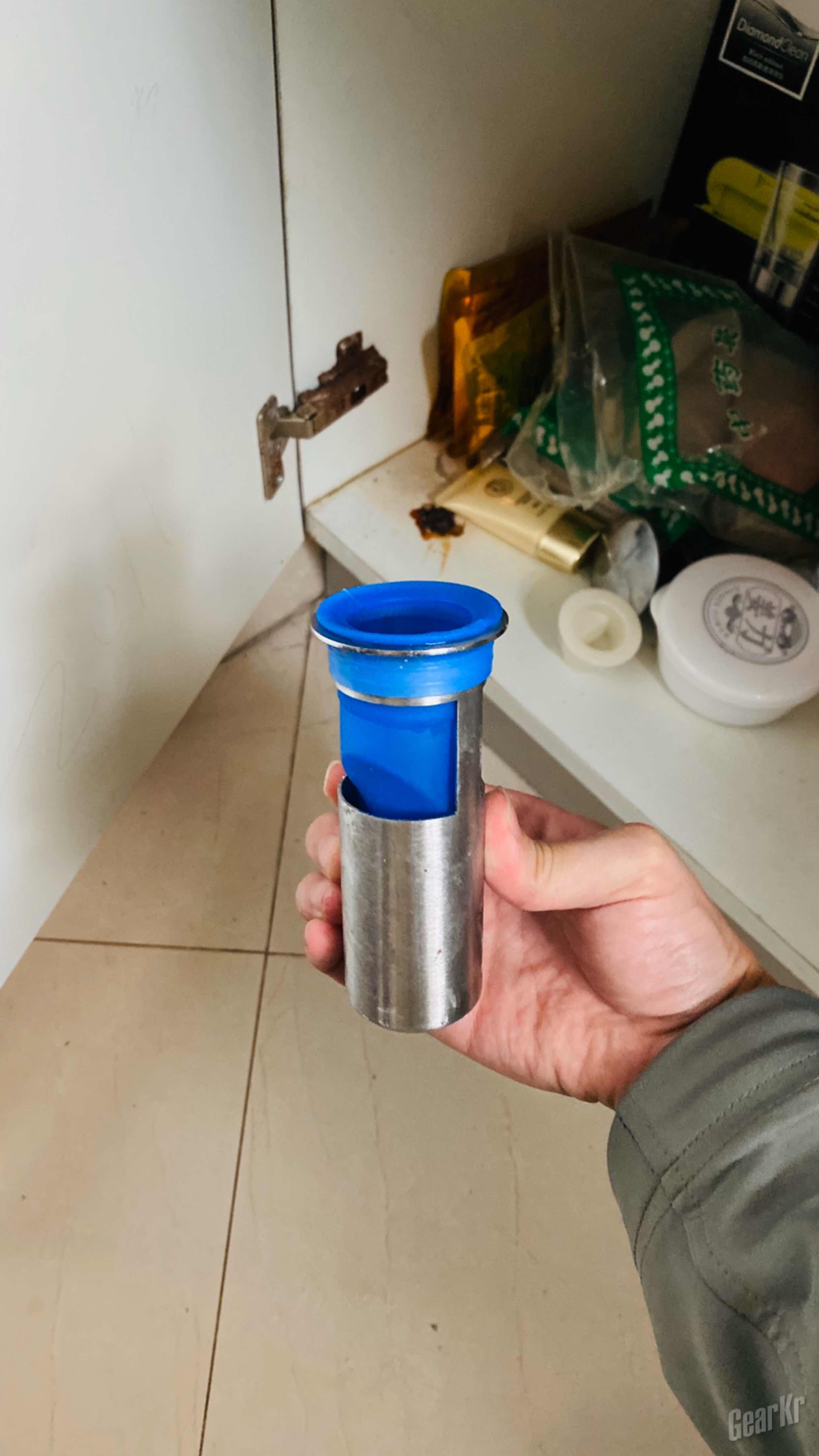 还有一种是鱼雷式双存水防臭反冲,这种地漏不建议大家购买,原因非常简单,大水流下流速不够,会造成满溢!