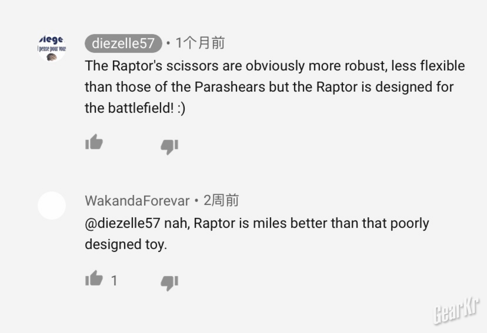 所以在急救剪的主要功能使用情境下,Raptor在设计、材质、功能都有更高的上限考虑。在Youtube,我几乎很少在猛禽的测评留言中看到 Parashears会更好的言论,而在Parashears的留言区,却往往有“宁可选猛禽” 的论调,可能也说明一些问题。