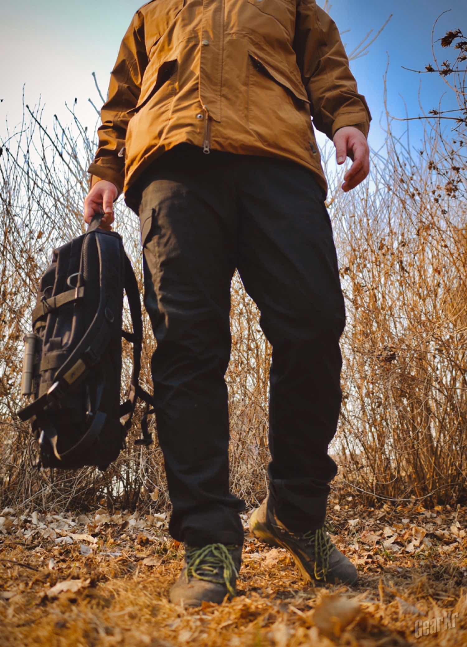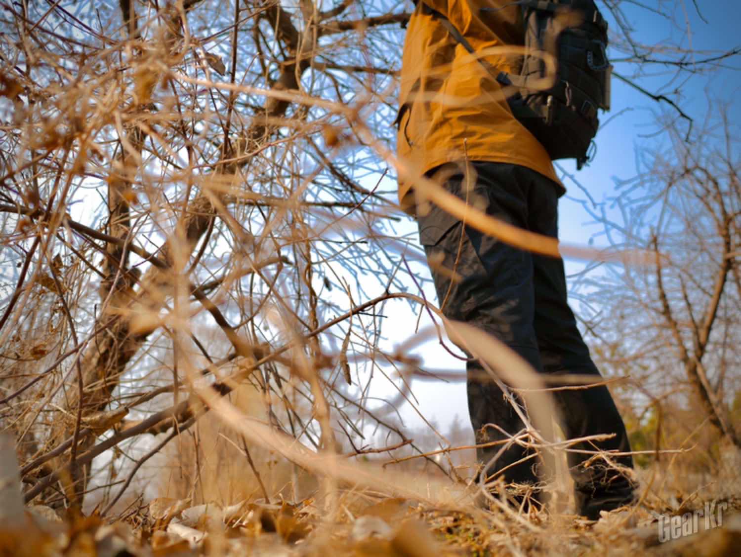 百分之80的聚酯纤维含量,虽然手感偏硬但是异常结实耐刮,对喜爱户外的人来说,经常走进丛林灌木附近,穿越没有路的地方,面料不结实的裤子非常容易gg,经过几天实验,完全不惧怕树枝等矮小灌木。