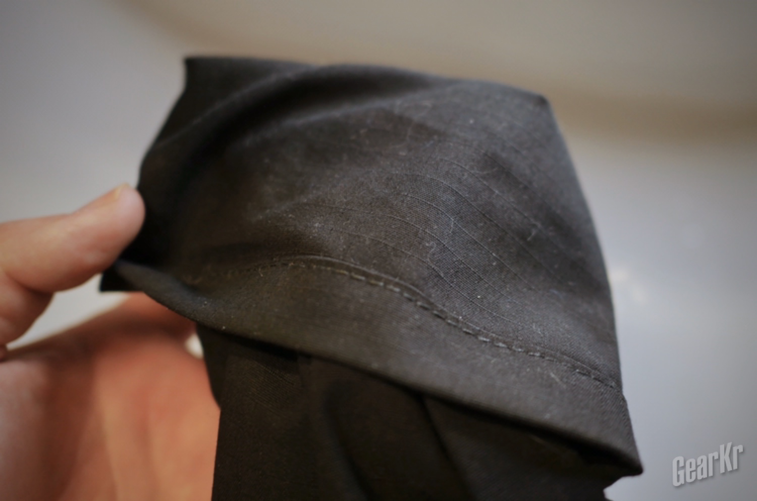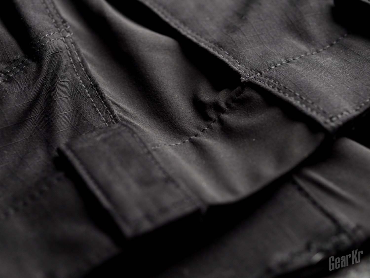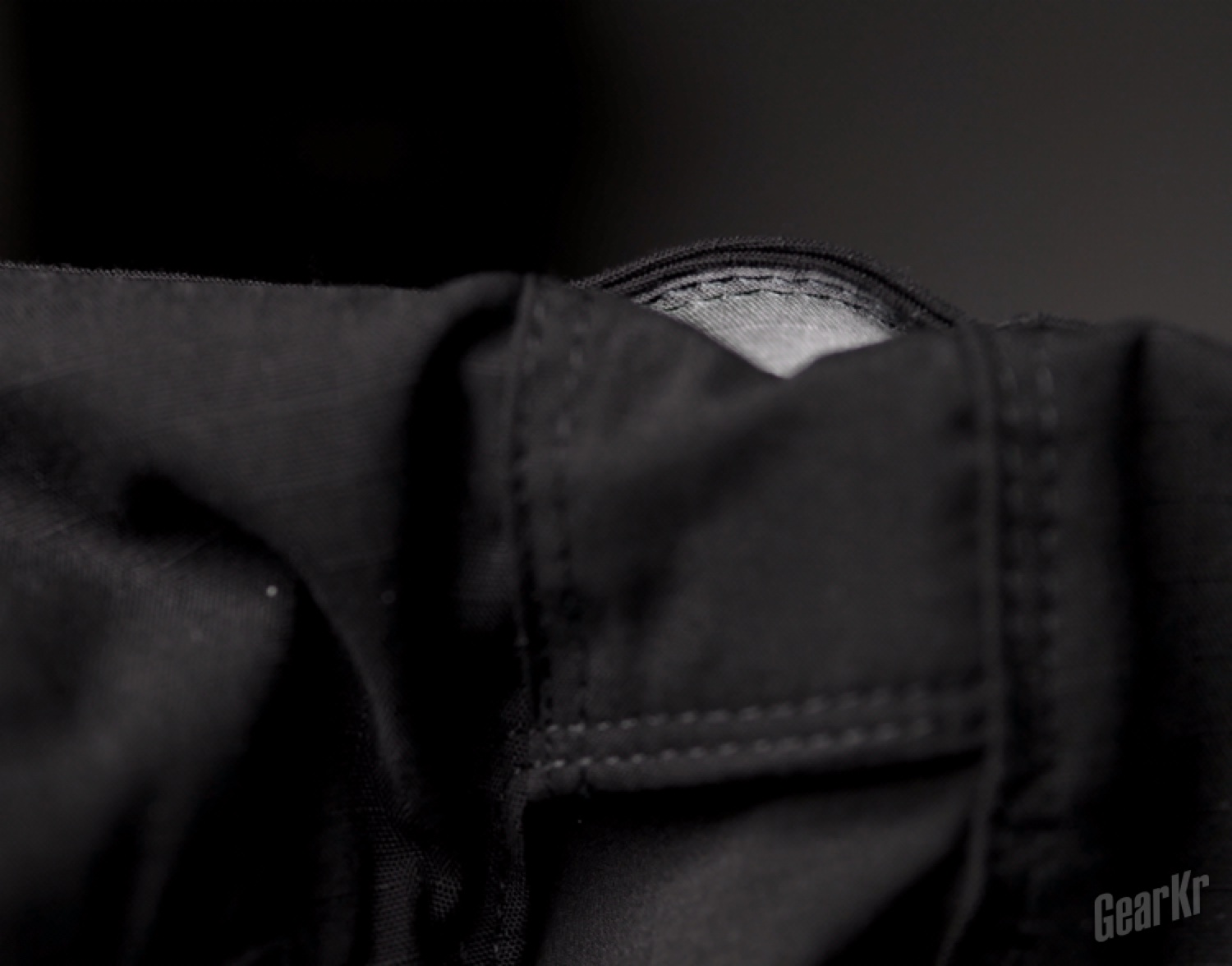 裤子内侧边缘的布料和外侧一样做了双侧加厚,这就巧妙了!为什么这么说 :因为布料本来就不是特别的柔软,加上裤兜边缘双层加强,使得口袋变换非常硬!硬有什么好处?相信大家不少是EDC的爱好者,经常裤兜里挂一些奇奇怪怪的刀啊、手电、战术笔、棍子和一些奇奇怪怪的东西。这样硬又平整的口袋边就异常顺畅(不会出现刀夹子插不进,裤兜变形的尴尬)。