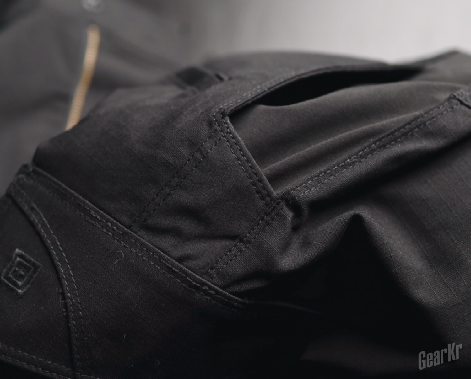 换做其他裤子则是看到表面大小的弹力透气布料,5.11这条则是把整个口袋连着裤腰都做成了透气的,进一步的加大透气面积和大腿接触的舒适度。
