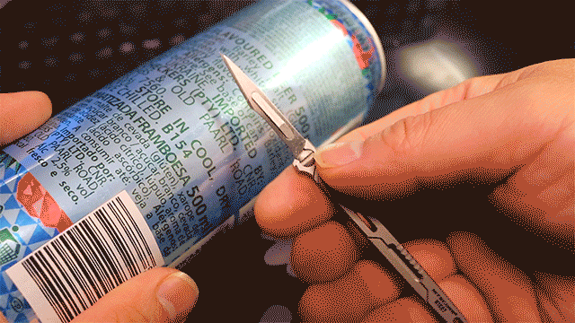 即使是碰到金属,NTK07也可以轻松应对,较细的刀刃加上锋利的刀尖,做穿刺切割的时候刀迹很容易控制,配上掌控感不错的刀柄,给易拉罐开个窗十分惬意。