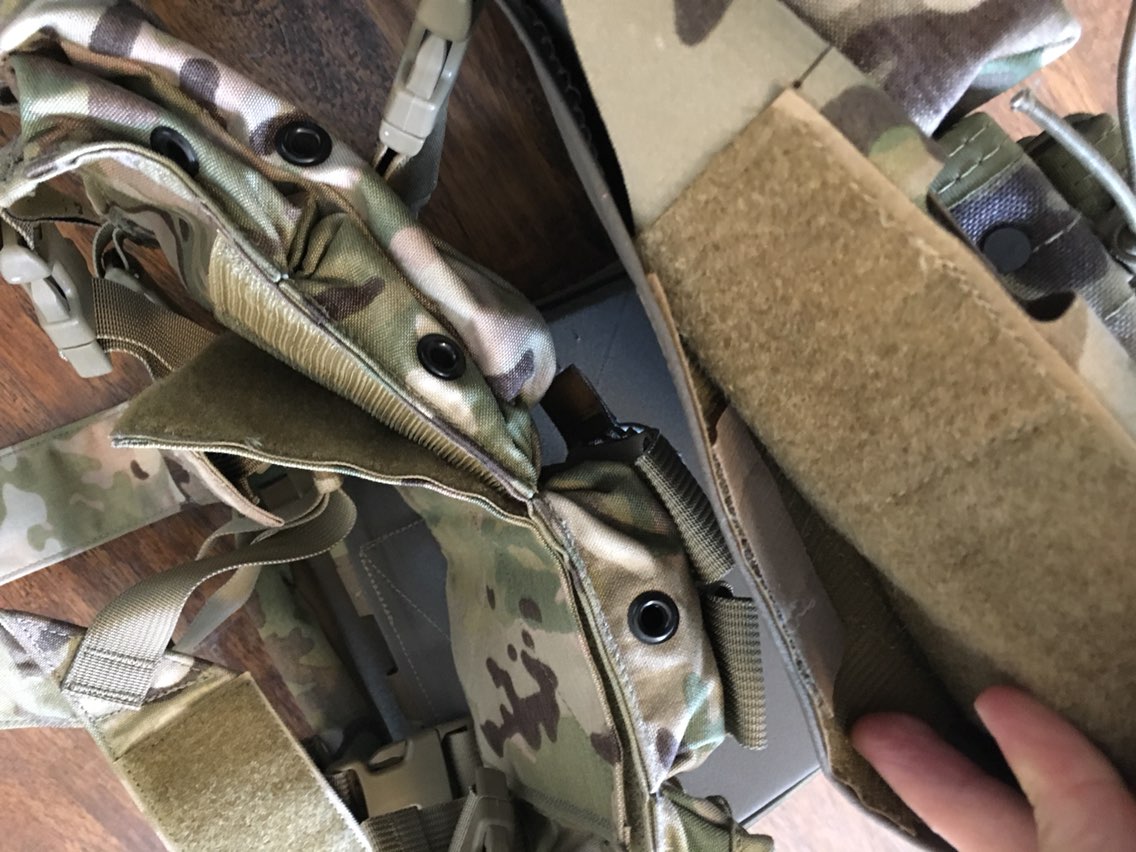 左图是haley胸挂,可以看到,前面是刺面背面是毛面,而右边的bfg背心则是相反,裁缝这款副包充分考虑到了这个问题,所以设计了分体的可翻转的魔术贴挂板
